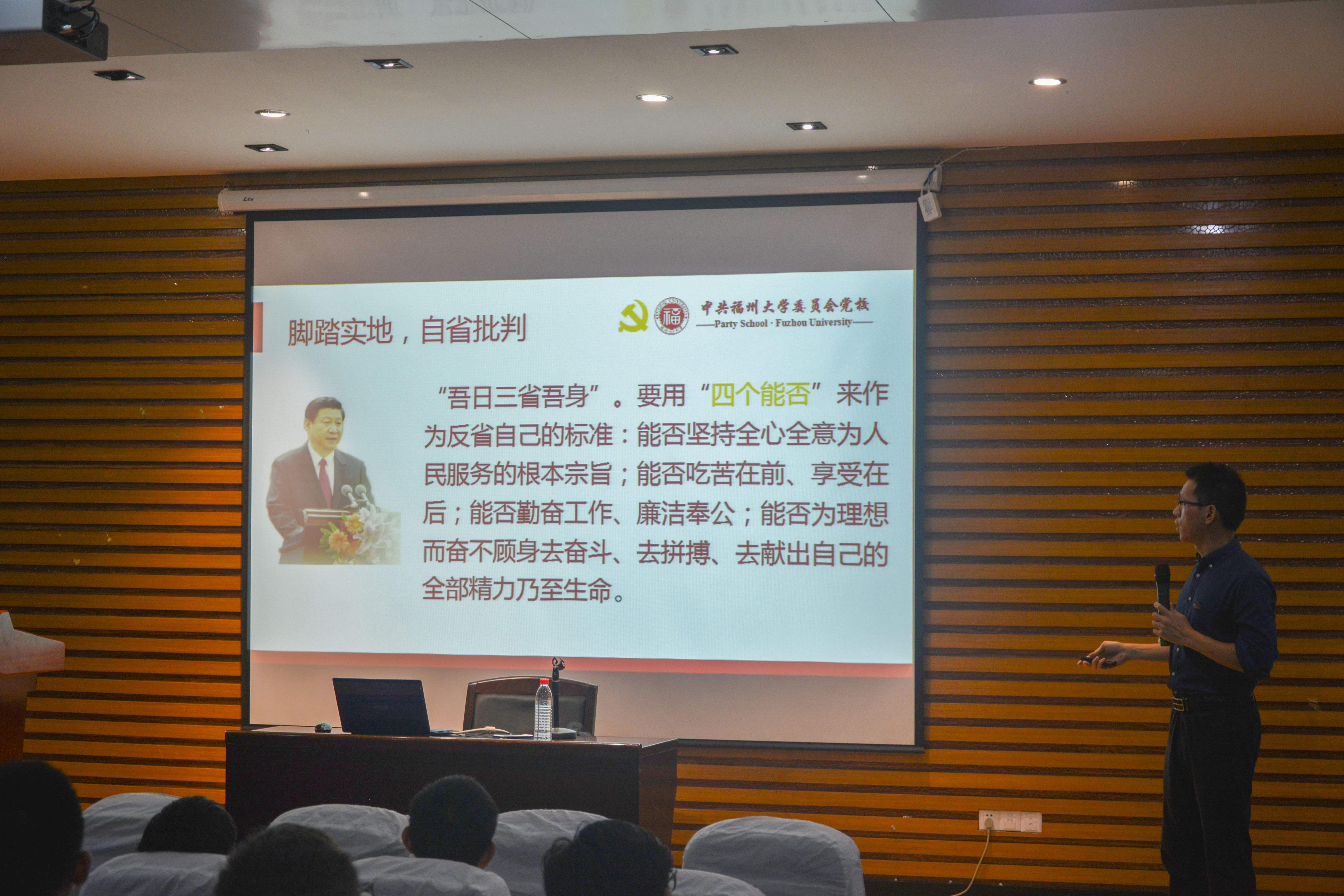 最后,张向宁老师提出了三个“脚踏实地”:脚踏实地,坚持学习;脚踏实地,自我批判;脚踏实地,塑造人格。并且希望同学们都能成为有理想、有信念的入党积极分子。