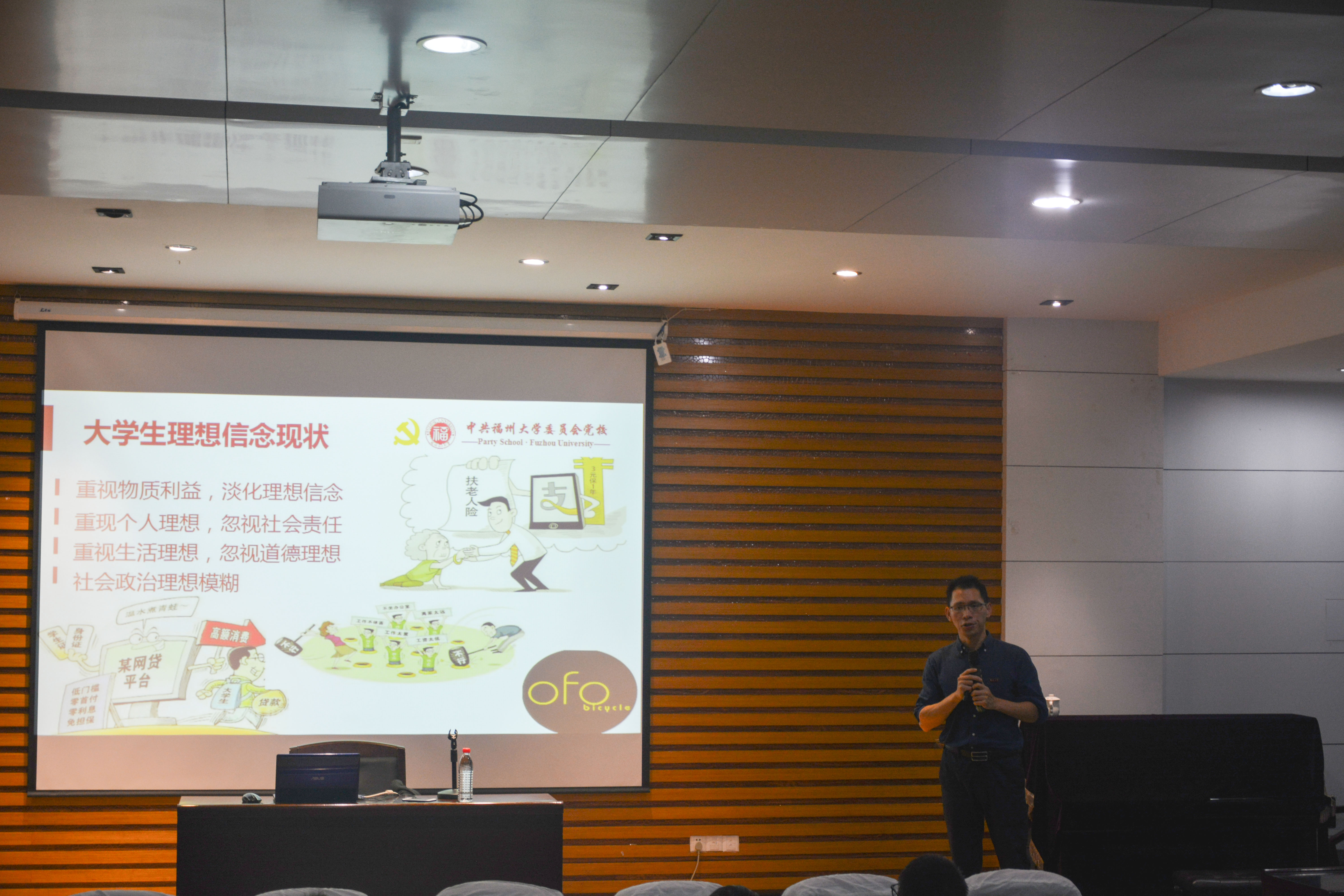 在正式进入讲解之前,张向宁老师先简单介绍了“理想”一词的含义。老师引用孔子之言——“三军可夺帅也,匹夫不可夺志也”,给予在座入党积极分子以“理想即为志,人生需有求”的正确意识。随后,老师从“大学生为什么要有理想信念”、“理想信念的重要性”以及“如何坚定理想信念”三个方面对理性信念做了进一步的阐述。张向宁老师指出了现今大学生重视个人主义、忽视社会责任的普遍理想现状,并由此提出了要有涵养修齐治平的家国情怀,涵养责任重于泰山的担当精神。同时他还特别强调新党章第三十二条第(三)点添加了“坚定理想信念”这一准则,突出了党和国家对当代中共党员需有理想信念的重视程度,让同学们明确了理想信念的重要性。