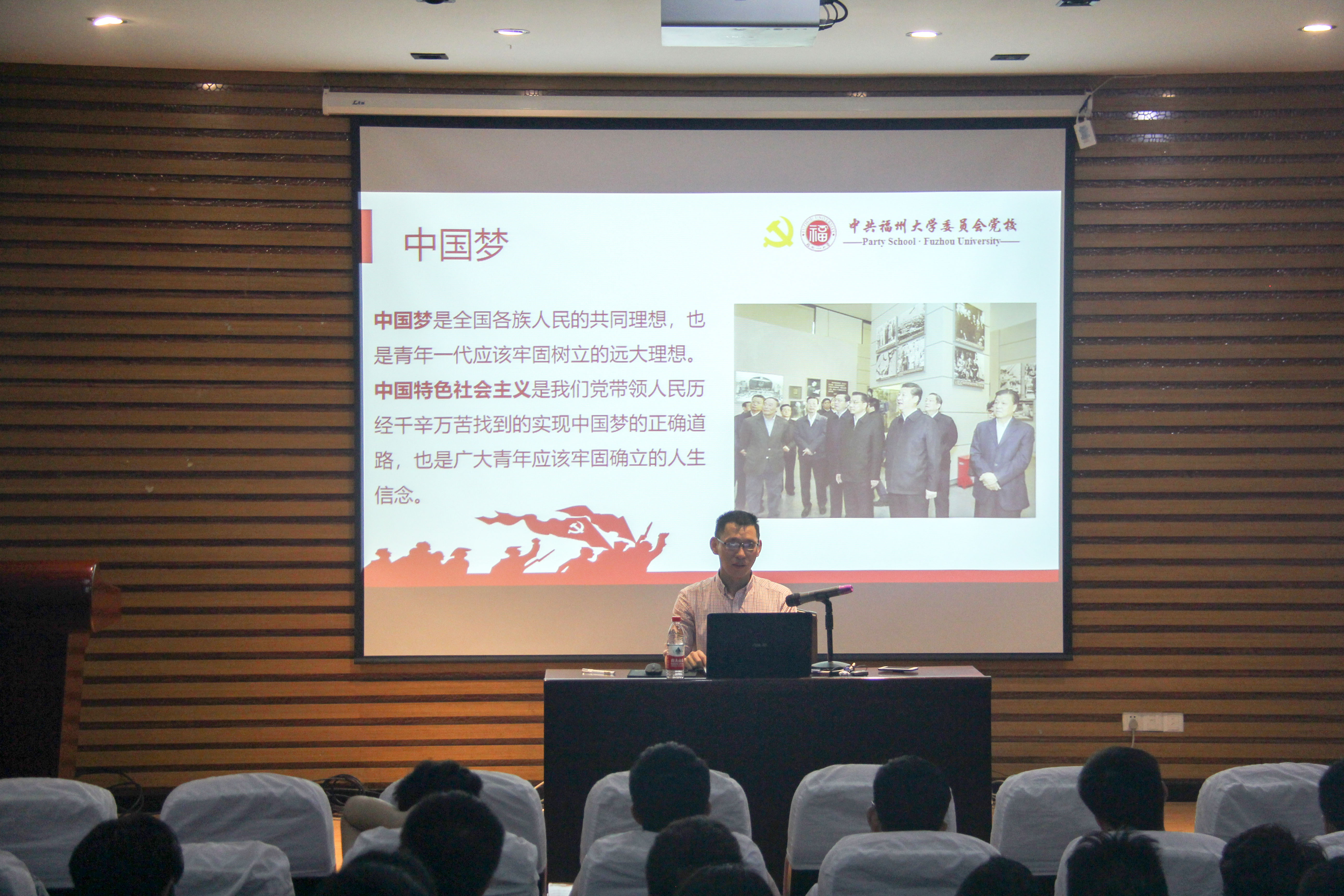 在主持人宣布课程开始之后,张向宁老师便开始讲课。首先,老师向各位入党积极分子强调大学生党员的使命与责任的艰巨,在能完成这项任务的背后必定有着坚定的理想与信念,这也是张老师此次讲话的主题:“功崇惟志,业广惟勤”。理想指引人生方向,信念决定事业成败,为使同学们更加深刻地理解这个思想,张向宁老师从以下三个方面阐述: