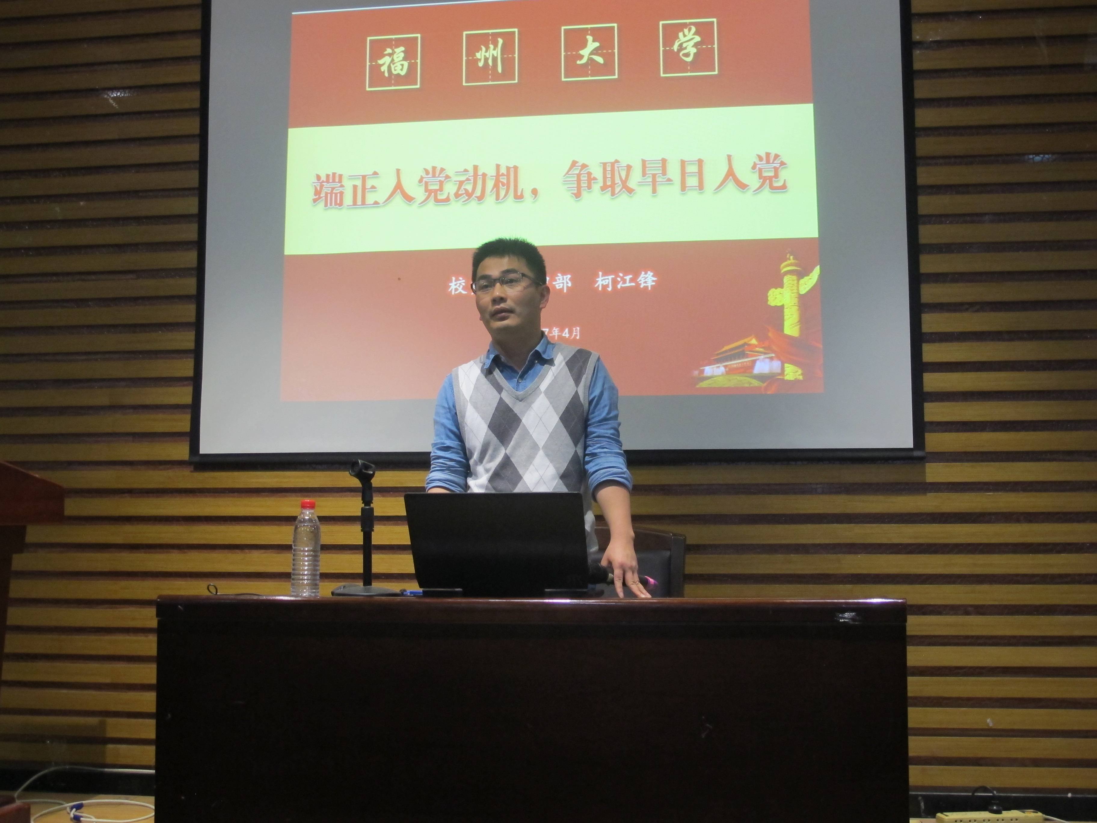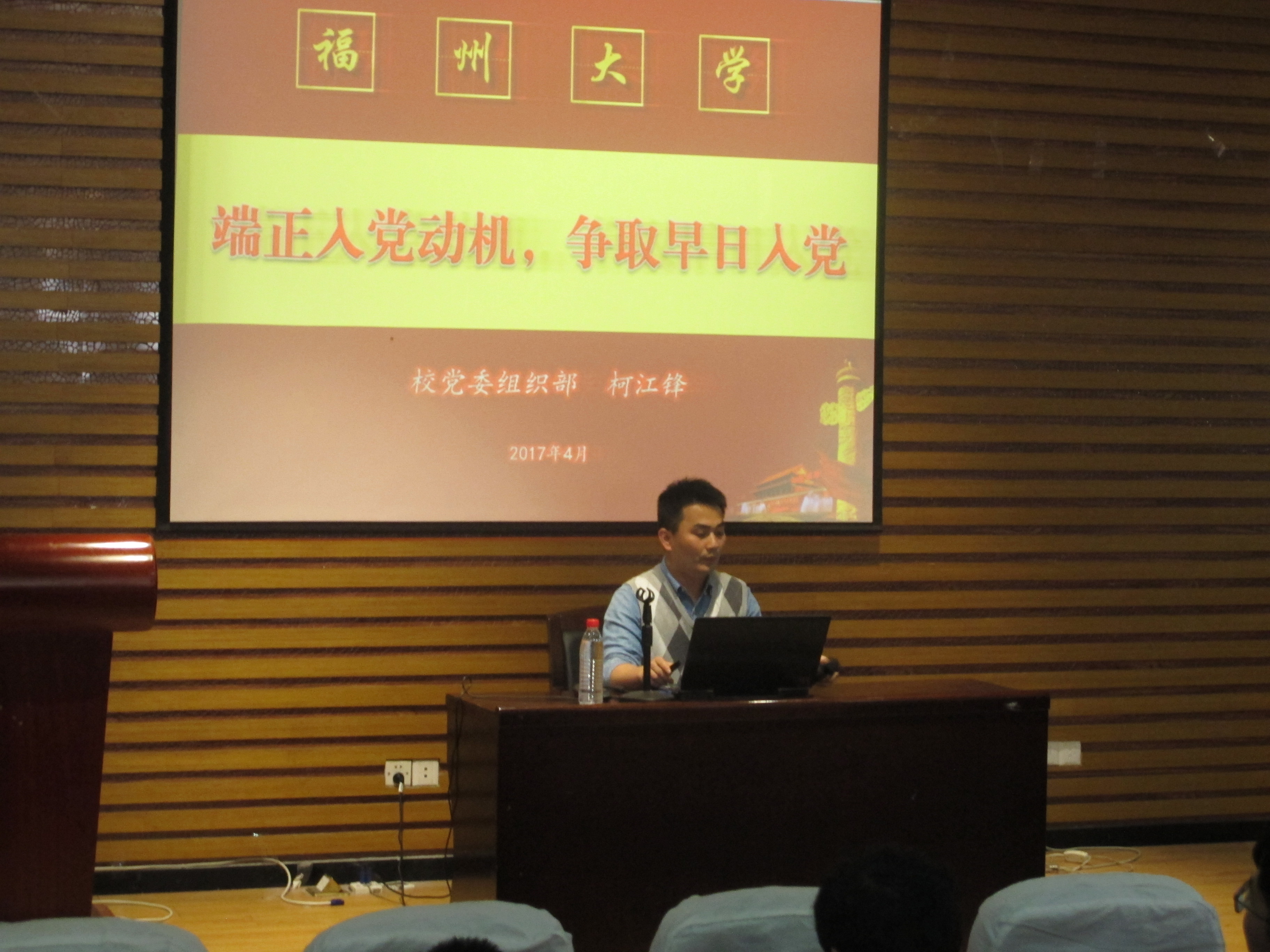 党课伊始,柯江锋老师播放了一段视频,向大家阐释了党的重要性。接着,柯江锋老师向现场的同学提问到:“大家为什么会想要加入中国共产党”,在场同学踊跃回答,说出了自己的想法,现场气氛很快地活跃了起来。听完同学们的发言,柯江锋老师对大家的想法提出点评,并总结到,想要争取早日入党,必须端正入党动机,端正入党动机是实现党的最终目标的客观需要。最后,柯江锋老师勉励大家学着让自己优秀,学会坚持正确的选择,不忘初心、继续前进!