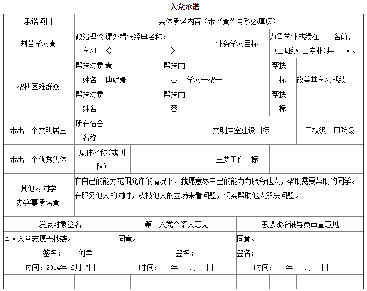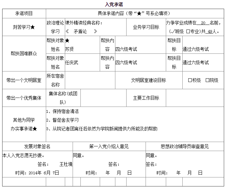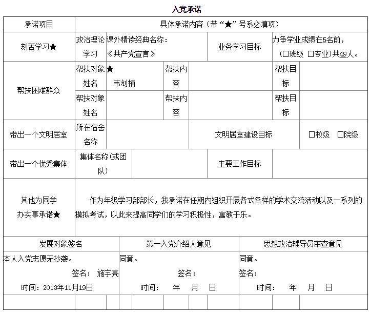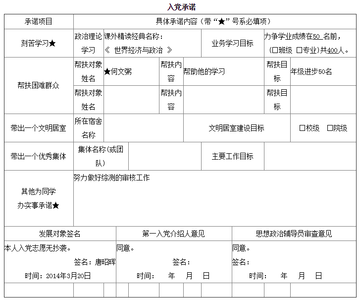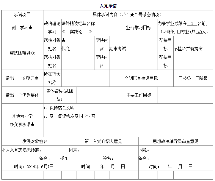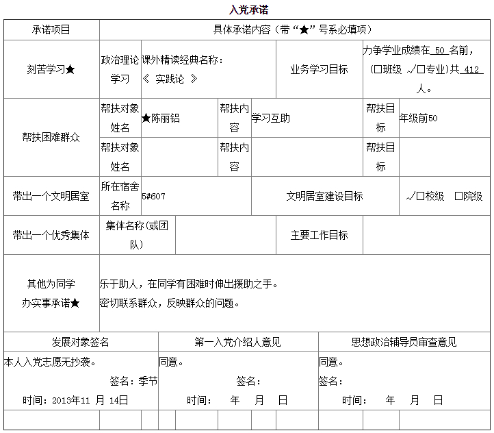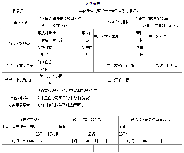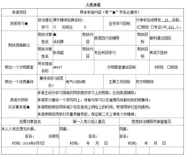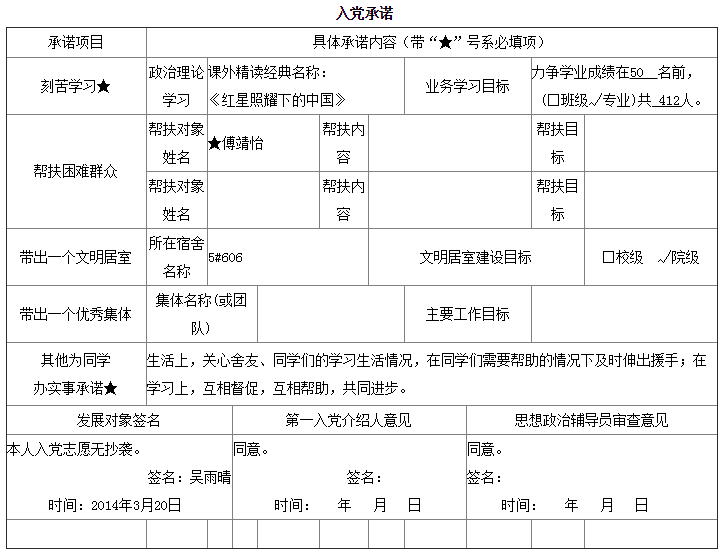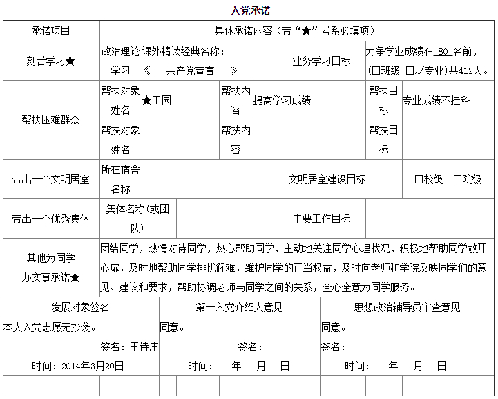 入党承诺书