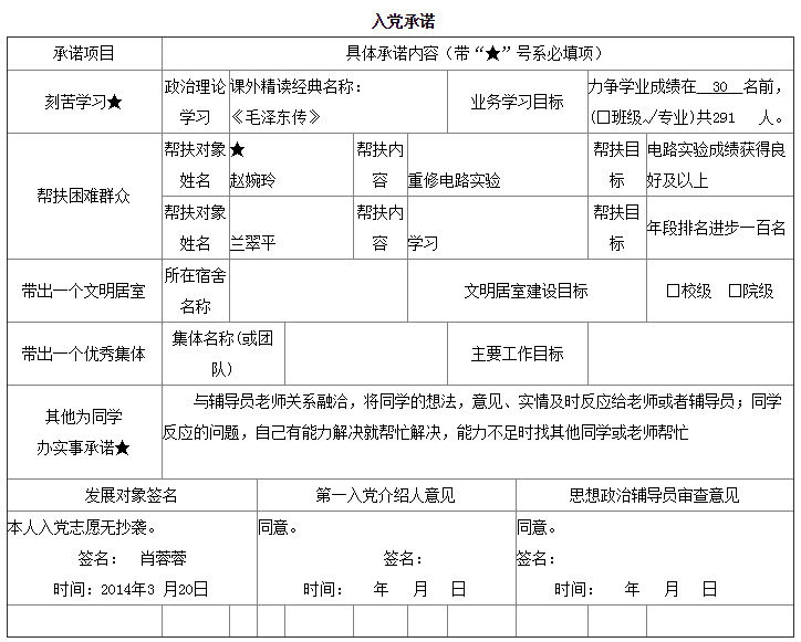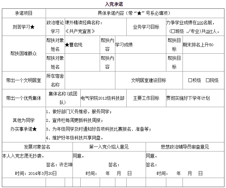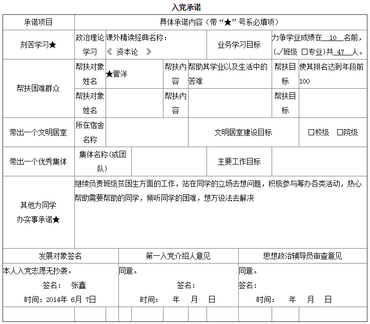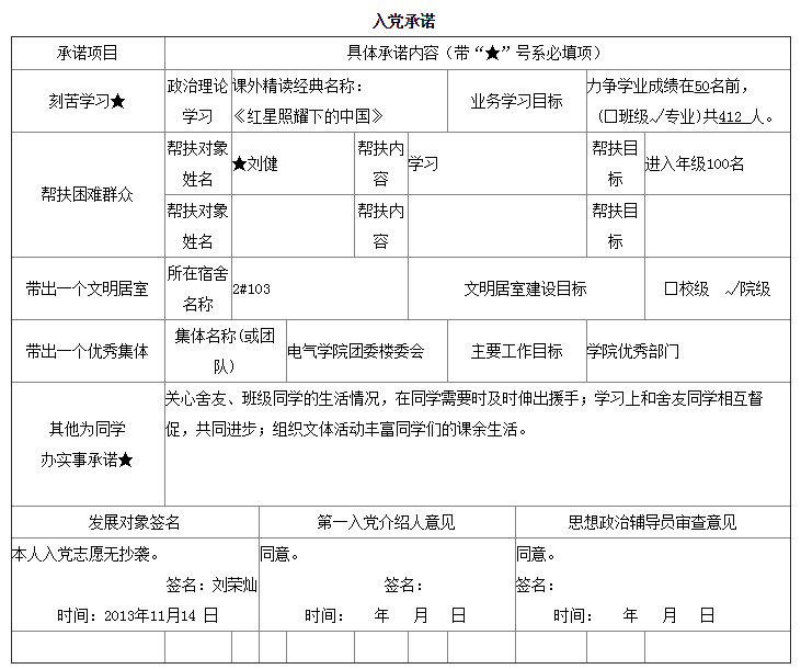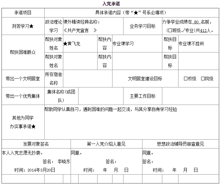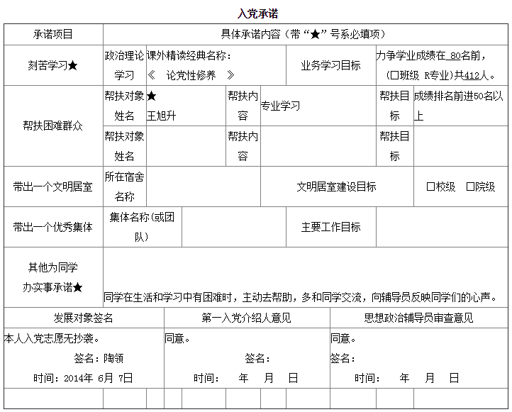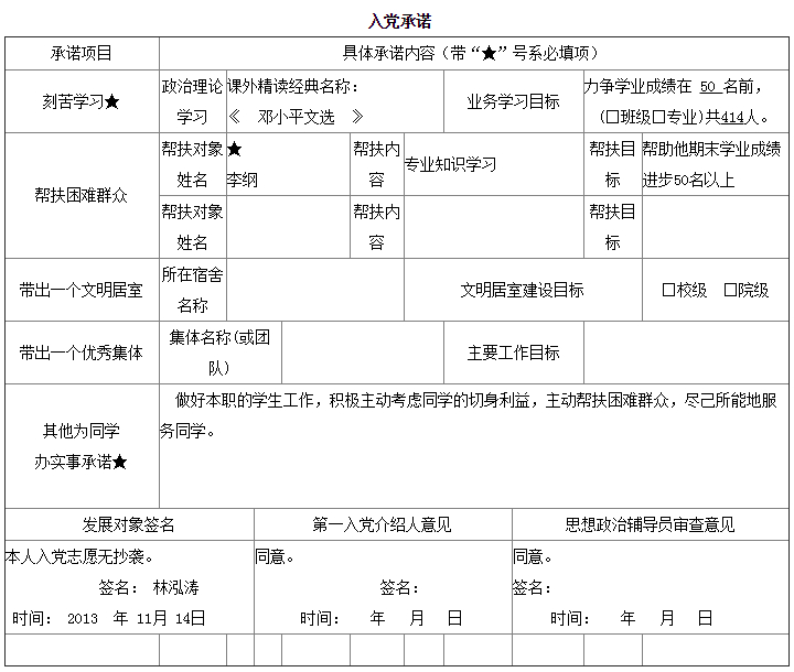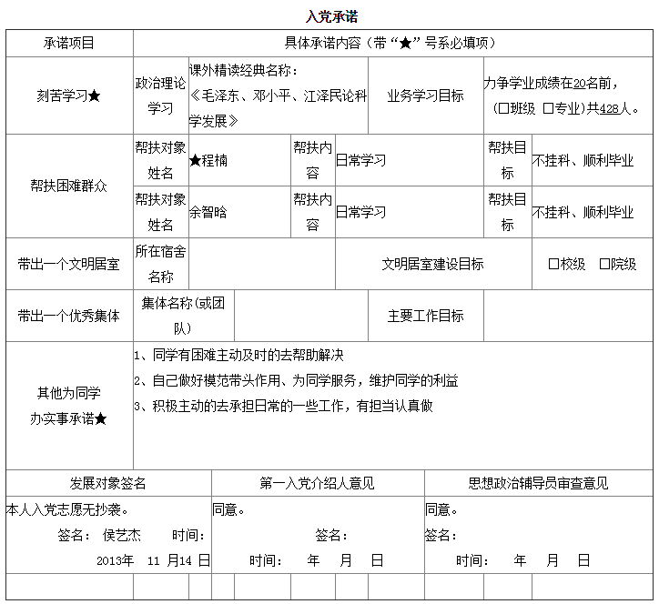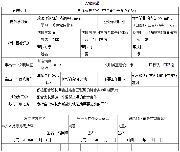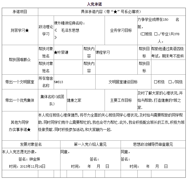 入党承诺书
