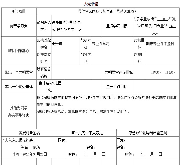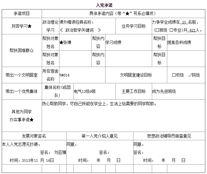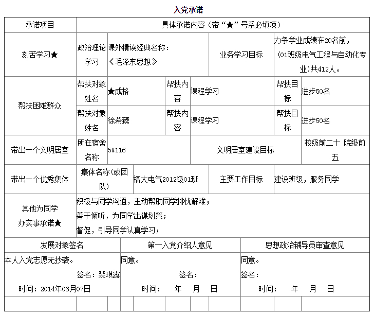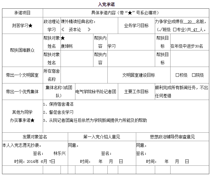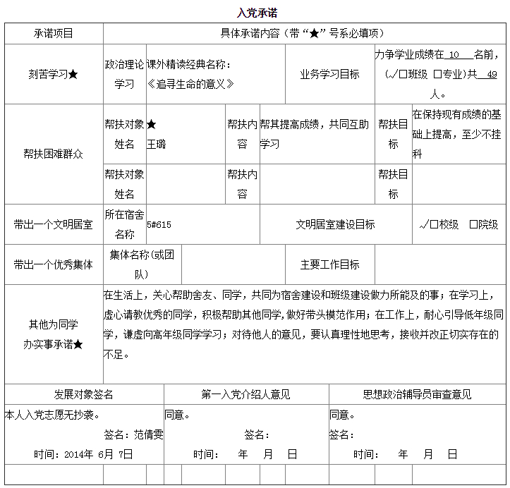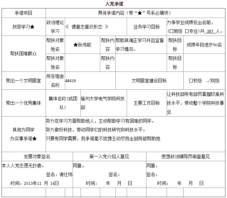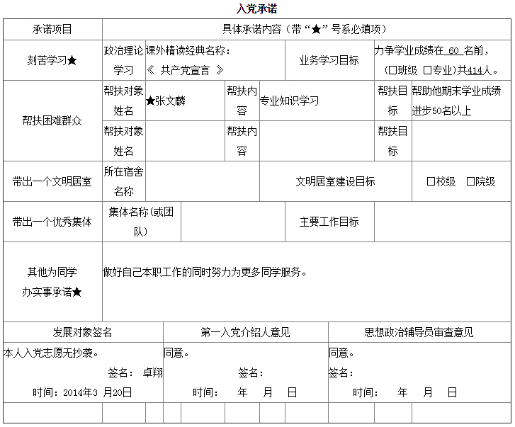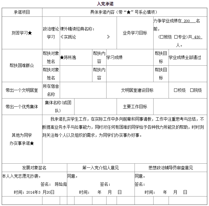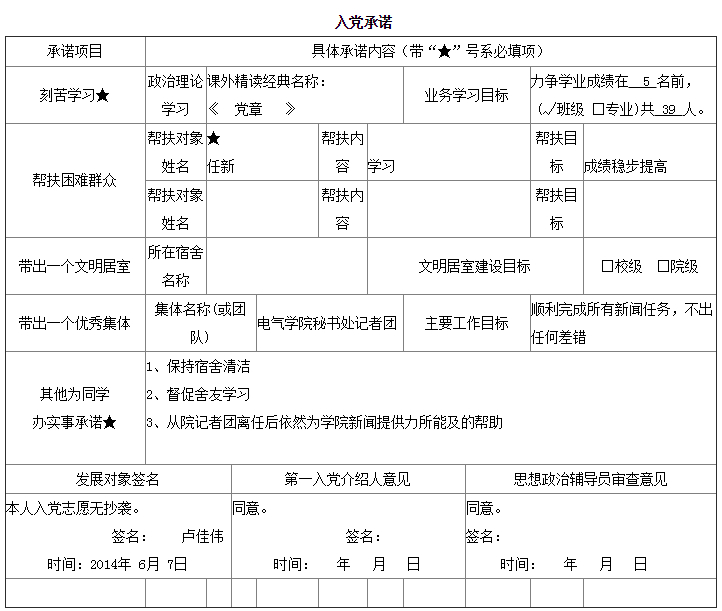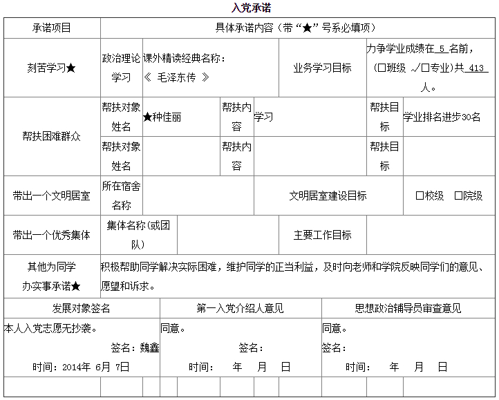 入党承诺书