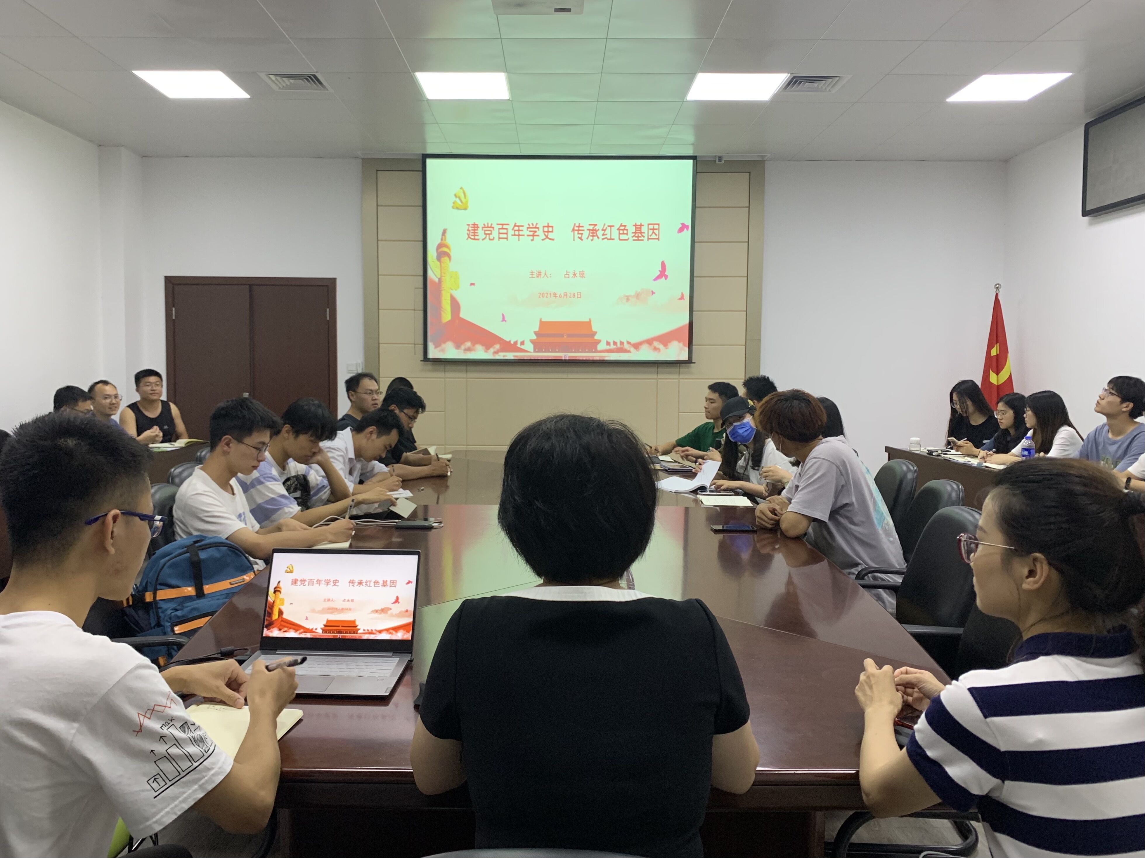 建党百年,学习党史,凝聚力量再出发,具有重大现实与深远历史意义。2021年6月28日晚,占永琼书记为博士生党支部、2019级学生党支部党员讲授以《建党百年学史,传承红色基因》为题的主题党课。