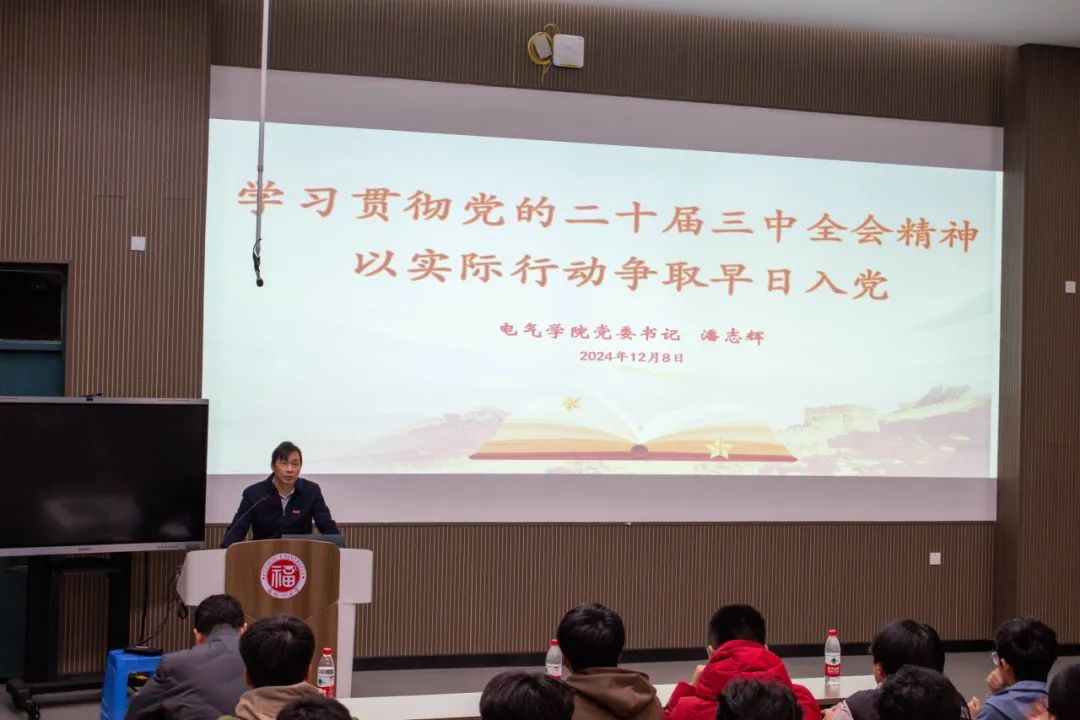 的辉煌历史,深度阐释了福大的三种精神。最后,潘书记着重指出,在新时代的背景下,福大学子应持续端正入党动机,并在日常学习和生活中积极向党组织靠拢。他强调,作为入党积极分子,应按照党员标准严格要求自己,深化对入党动机的理解,并不断提升个人素质,以实际表现争取早日加入党组织。