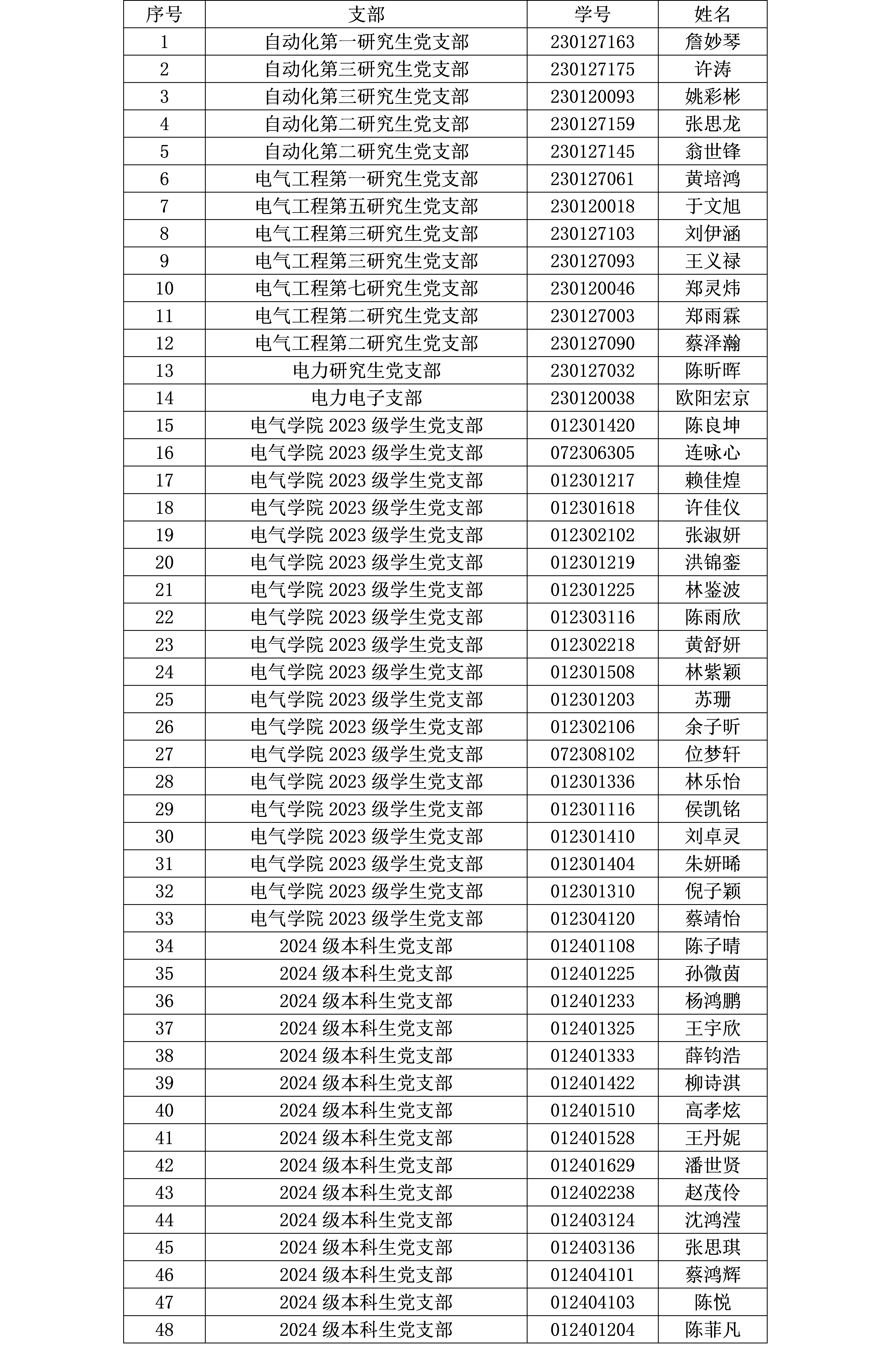 按照发展党员工作有关规定,经基层党支部研究,分党委于2025年10月29日备案同意詹妙琴等48名同志为发展对象,现予以公示,公示期自2025年10月29日至2025年11月4日。