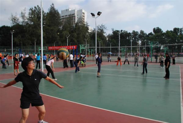 女教工排球队以不失一局的佳绩闯入决赛,对手是实力强劲的直属联队。赛 前,队员们早早来到了场地进行热身,啦啦队也整容强大,院党委书记兼教练陈冲老师也到场进行指导。三点整,比赛准时开始,第一局,偷拍视频