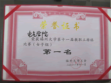 第十一届教职工排球赛(女子组)第一名 2011年5月校第九届教职工趣味运动会第五名