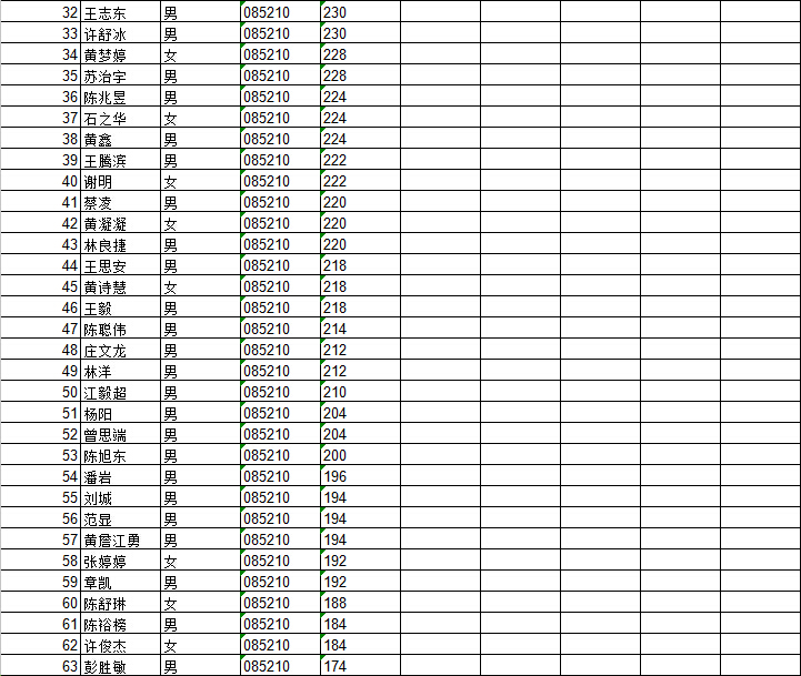 在职工程硕士GCT上线名单(分数172分,电气专业招生数为128人,控制专业招生数为48人)