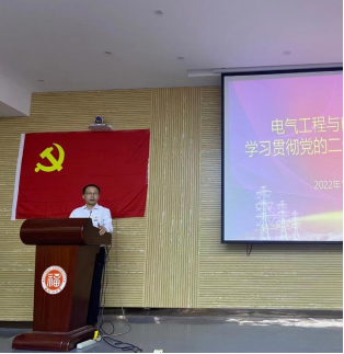 2022年12月15日上午10时,福建省教育系统学习贯彻党的二十大精神“百人宣讲团”成员、电气学院党委副书记鲍星华在电气学院楼北230多功能厅与学生骨干就学习贯彻党的二十大精神进行宣讲和互动交流。