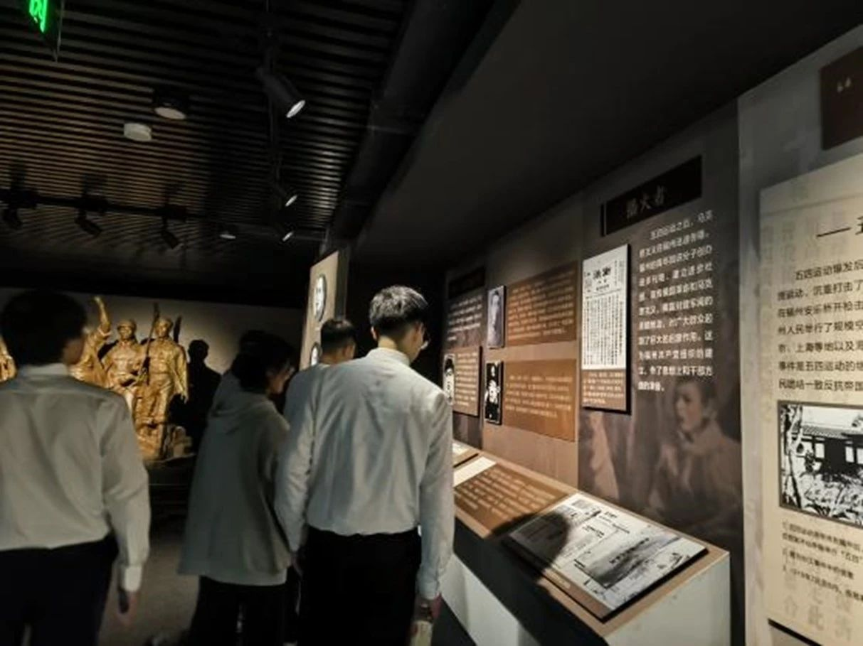 随后,一行人移步福州市革命英烈事迹陈列馆。在解说员的带领下,历史的车轮倒转,同学们回到过去,沿着车辙,重温福州近代史。馆内栩栩如生的雕像,先辈们留下的字迹,慷慨赴死前壮烈的话语,使同学们如身临其境,感悟颇深,明白了革命胜利之来之不易,也更加坚定了我们继承先烈遗志、为实现中华民族伟大复兴的中国梦而努力奋斗的信念。