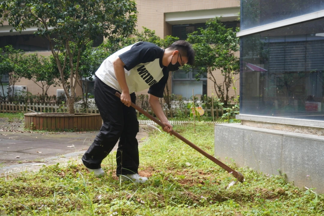 参与成员带着满腔热情和干劲开始了劳动,大家手持扫帚、铲子、锄头等工具,分工合作,有的挖坑,有的打扫,有的浇水,共同努力,对劳动基地进行清洁和维护,让基地面貌焕然一新。