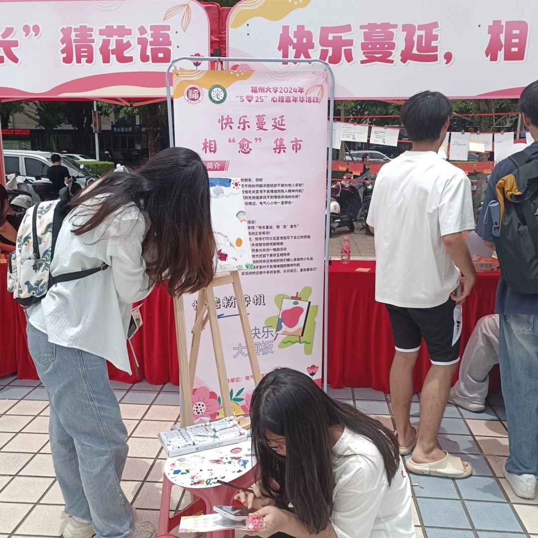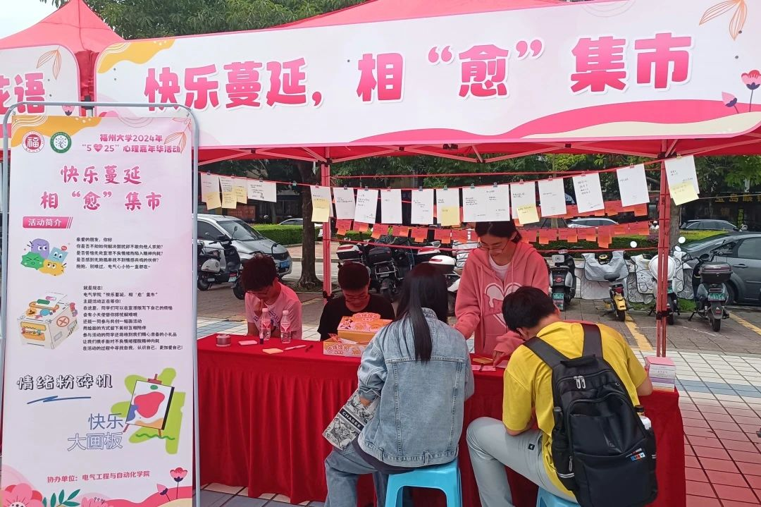 在旗山校区青春广场,开展了“快乐蔓延,相‘愈’集市”主题活动,以互动的方式促进同学们对心理健康理论知识的实际运用,为不同情绪找到发泄口,减少精神内耗。本次活动共分为情绪粉碎机和快乐传递大画板两部分,现在,让我们一起直击现场看看吧!