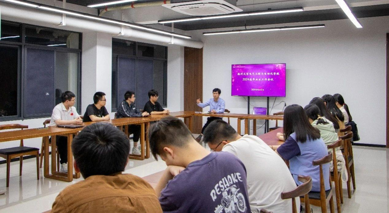为有效推进学院2024届毕业生相关工作,巩固育人成果,6月2日晚,电气学院2024届毕业生工作会议在明德苑同观书院召开。会议由学院党委副书记钟钛申主持,辅导员唐龙翰以及2024届学生干部参加。