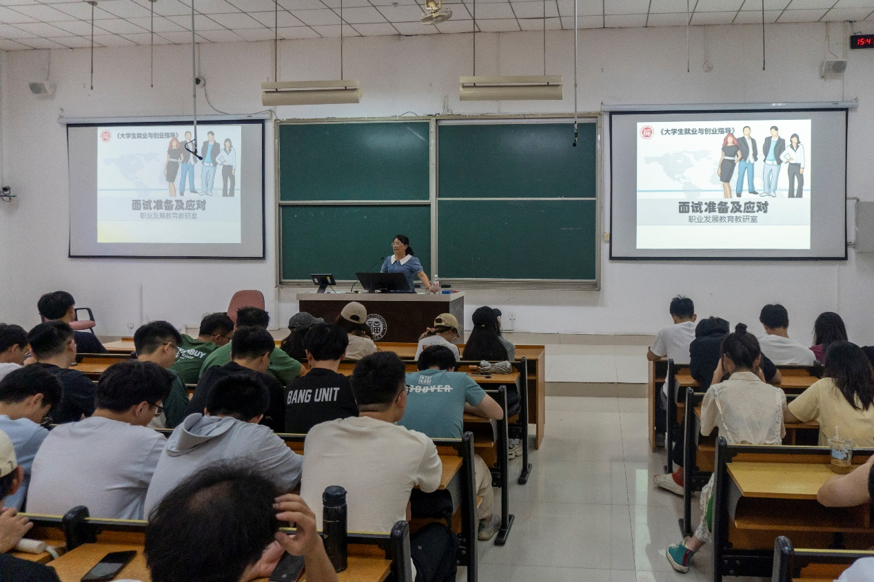 对于如何准备面试,许老师为同学们介绍了企业面试流程、面试前的准备工作以及不同面试类型的注意事项。在面试技巧上,许老师指出要提前做好充分准备,对企业和岗位有深入了解,对可能被问到的问题进行系统梳理。在面试过程中,同学们要保持从容自信的状态,用事实说话,与面试官进行良性互动。
