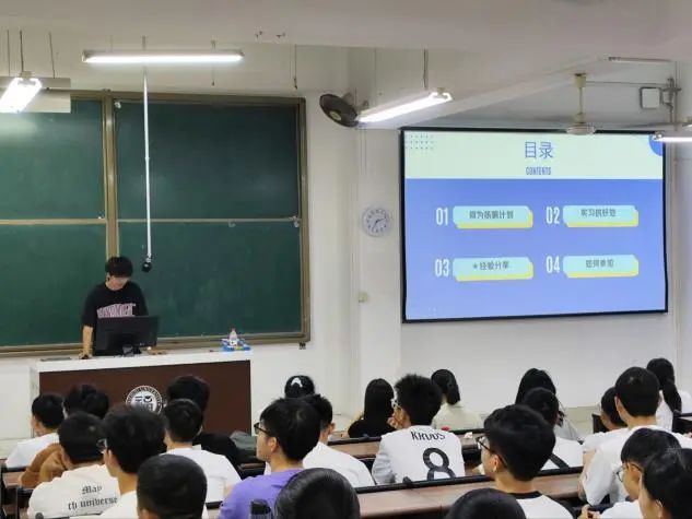 刘志洪同学主要从自身的实习过程与经历以及如何选择岗位方面,向新生介绍了扬帆计划。他以幽默的语气向新生介绍了他在扬帆计划暑期实习中遇到的一些有趣的故事和经历,并分享了如何选择适合自己的岗位。从他的分享中同学们了解到,要立足于自身的未来发展目标来综合考虑,明确自己的需求,并且要充分了解各个岗位的工作才能避免踩雷。