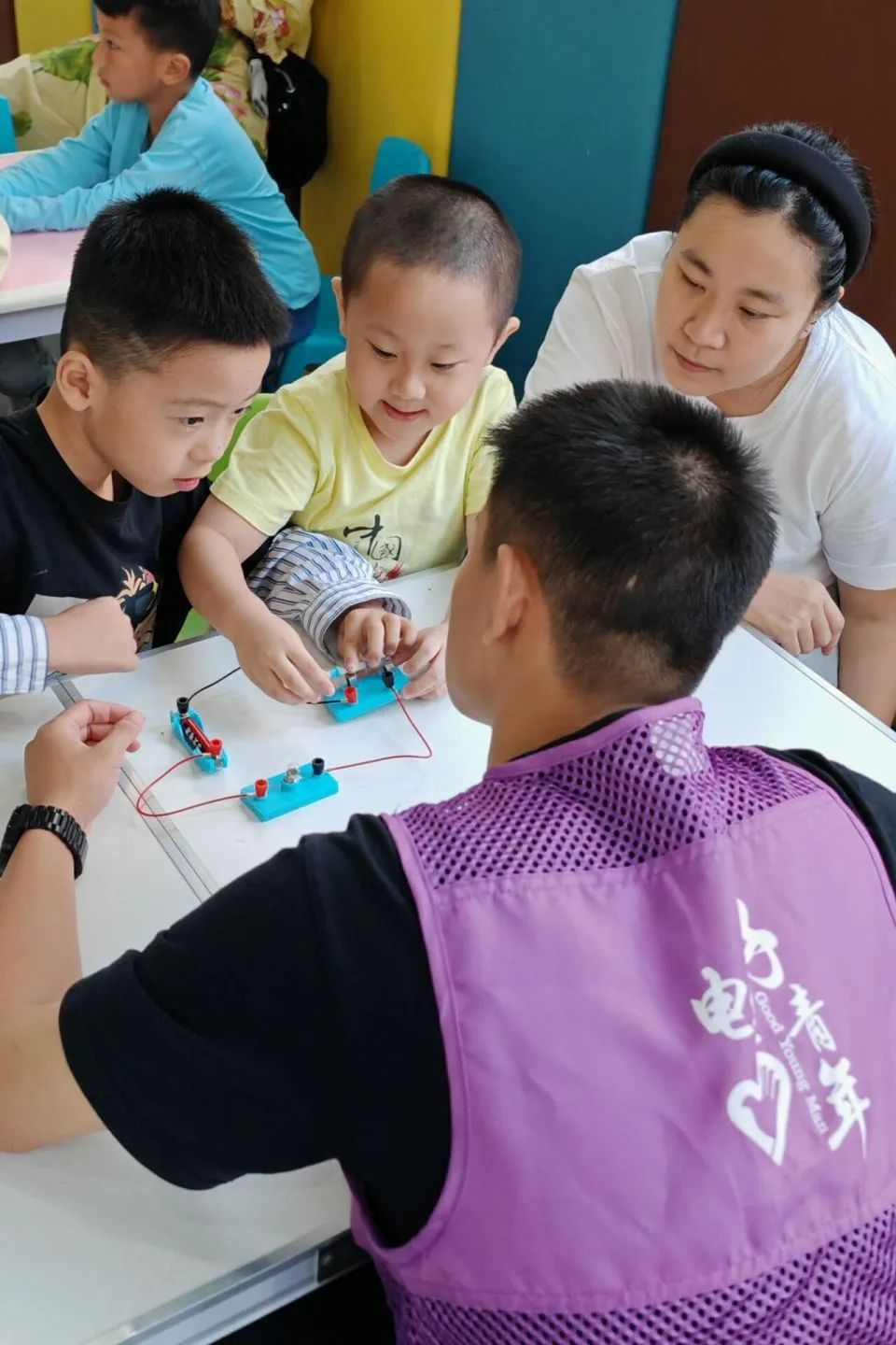 当前,在已开展的两期电磁学义务科普课堂中,电气学院的志愿者与苍霞社区的孩子们共同踏入电磁学的神秘殿堂,开启了一段探索与发现的旅程。在从初步认识基本电路元件,到深入探索静电世界的奥秘,每一堂课都如同一场奇妙的探险,共同见证了科学的魅力与力量。各团支部的志愿者们不仅播种知识,传递希望,更奉献爱心,以实际行动点亮未来。课程效果显著,获得了小朋友及其家长的一致好评。