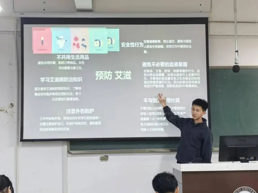 11月15日至22日,“禁毒防艾安全知识大讲堂” 在电气学院各专业班级内有序开展。小讲师们紧扣毒品的定义、涵盖的种类,以及艾滋病的传播途径、预防方法等关键要点,结合真实案例与法规解读,运用图文并茂的 PPT、震撼人心的视频资料,生动形象地向同学们剖析各类安全隐患及应对策略。大讲堂不仅加深了同学们对安全知识的理解与记忆,更点燃了大家齐心协力营造健康、安全的校园环境以及社会环境的热情。