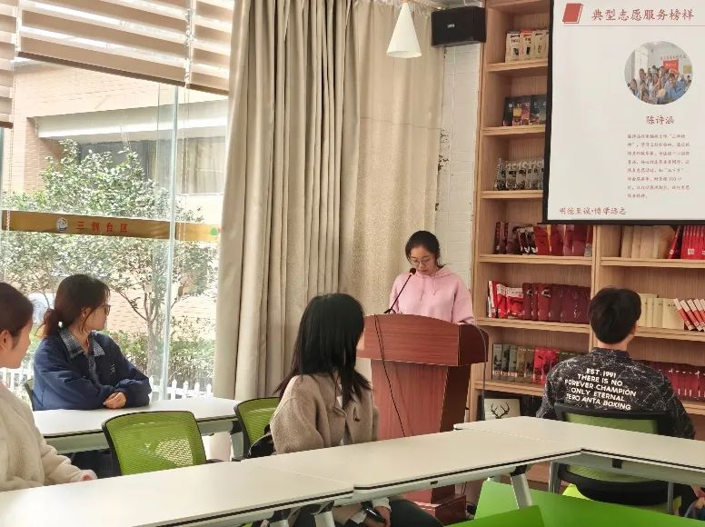 接着便由志工部负责人丁蓉雯发言,她分享了关于习近平总书记对于志愿精神的重要论述,让我们了解了国家领导人对于我们志愿者工作的殷切期盼,并且分享了自己成为志愿者以来的点点滴滴,回忆每一次与志工部大家庭的每一次工作经历,新生迎接、支教活动、旧物回收等等,都结合自身带给我们全新的志愿感悟与理念。她所分享的内容更是激励电气学院每一位志愿者以更高的热情和更专业的态度投入到志愿服务中,在服务中展现青春风采。