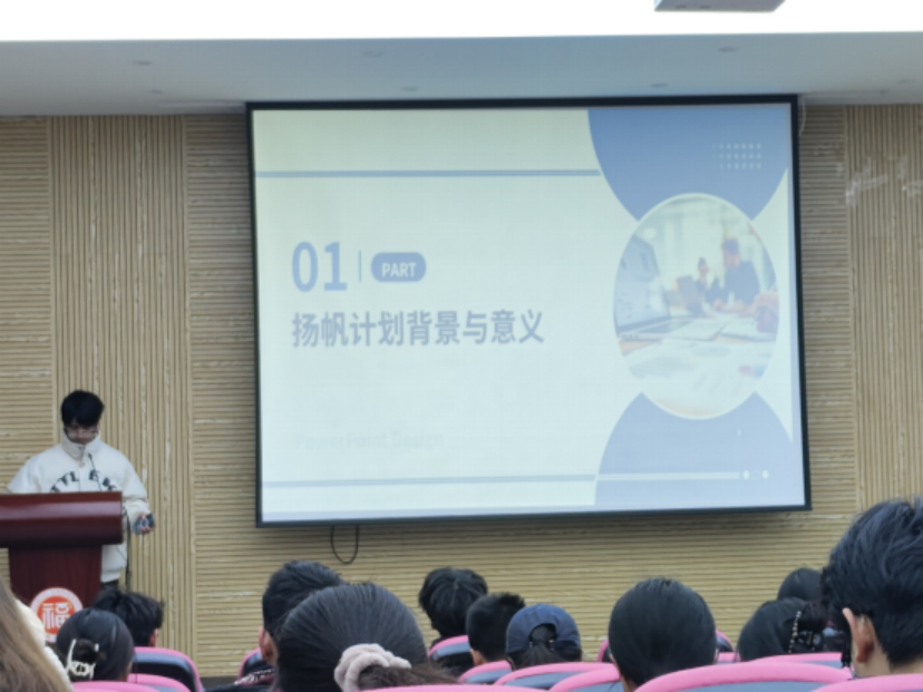 叶立炜同学首先细致地解读了扬帆计划的基本理念、预期目标以及主要实习单位。他依托自己的实习历程,深入讨论了实习在提升专业能力及拓宽社交网络方面的作用。他坦诚地分享了自己在职业选择、简历撰写以及求职过程中的心得体会,并就同学们在给予了宝贵的建议。在讲座的最后部分,他细致地说明了扬帆计划的报名流程,为在座的同学们提供了清晰的行动指南。