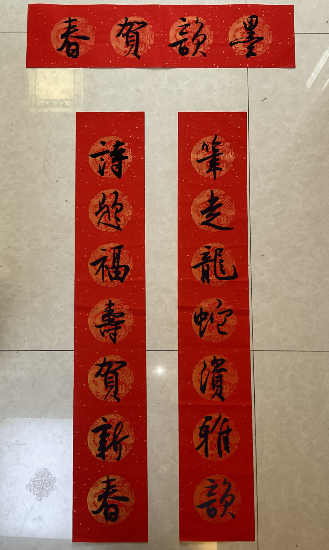 一幅幅精美的春联作品,表达了同学们对蛇年新春的祈盼与祝福。
