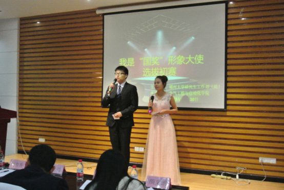 首先由崔本丽和葛钊两位主持上台,分别介绍了各位评委,他们分别是校研究院常凯老师、校团委张茜茜老师、校研究生工作部刘有升老师、校学生工作部岳志强老师、校党委宣传部赵鹏老师、校研究生工作部颜文朗老师,以及电气学院研究生辅导员许海燕老师。本次比赛共有29名选手参加,其中来自电气学院的选手有3位,他们分别是黄云程、游建章和张伟豪。比赛开始后,国奖获得者纷纷上台展示自己的国奖故事,讲诉了参加过何种竞赛,获得过何种荣誉等等。在这紧张而严肃的选拔赛中,有的国奖形象大使还带来了才艺表演,以此来缓解紧张严肃的气氛。有的进行了现场演唱,有的现场弹钢琴和拉二胡,甚至还有中、英的诗朗诵《再别康桥》,可谓是才艺双绝!