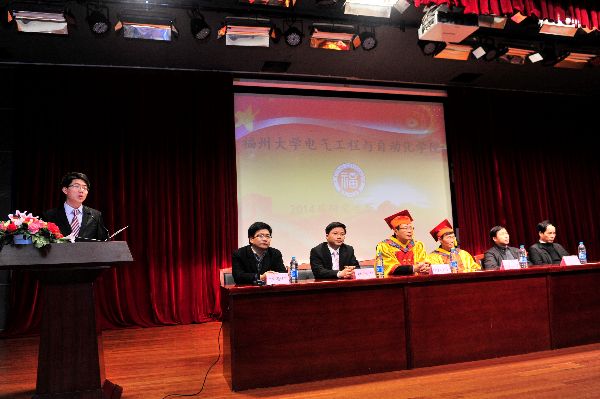 毕业典礼由毕业生卢冠达主持,共进行了六项议程。首先是全体师生起立,怀着崇高的敬意,奏响国歌;接着是陈为院长为此次毕业典礼致开幕词,陈为院长向全体毕业生表示了祝贺,同时希望同学在工作中,善于发现问题,解决问题,希望同学们能抓住机会,迎接挑战;其次是中海创集团林泽生副总经理为毕业生赠言,虽然短短的几句话,却表达出了他对毕业生满满的祝福;再次是教师代表鲍光海副教授进行发言,他作为教师的代表,对2014届研究生两年半以来取得的成绩进行了充分的肯定;然后是毕业生代表林燕桢同学发言,她感谢了两年半以来老师们的辛勤栽培,抒发了自己对母校与同学们的不舍之情;最后,在欢快的歌声中,毕业研究生们依次走上主席台,林泽生副总经理、缪希仁副院长为他们颁发学位证书,陈冲书记、陈为院长为他们拨动帽穗。