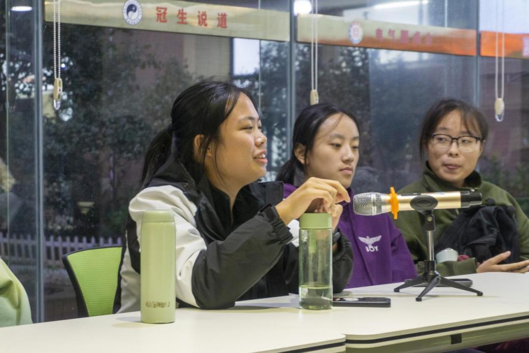 邱宇多同学谈到三年来的坚持锻炼成就了现在的自己,体育精神让她在生活、学习和工作中都受益匪浅。