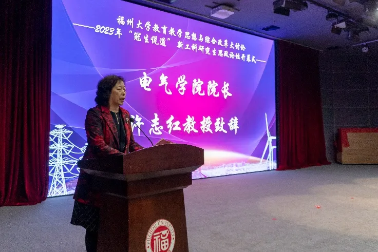 接着,电气学院院长许志红教授发表致辞。她表示,前天下午学校召开了教育教学思想与综合改革大讨论启动大会,电气学院积极响应、形成共识、迅速行动,于今日举办电气学院2023年“冠生说道”新工科研究生思政论坛。她指出,当今全球发展和社会变革为中国高等教育的发展带来了新机遇和新挑战,在“两个一百年”的重要交汇期,高校研究生教育既肩负着为国家培养高层次创新人才的历史重任,更关乎我国建成创新型国家、建成世界科技强国的历史使命。她表示,新时代研究生规模的急剧扩大给研究生教育管理带来了新问题、新挑战。为更好地应对这些新问题、新挑战,就要抓好研究生教育中的思政工作,构建大思政格局,精准地把握新时代研究生教育是服务国家战略、立足教育实践、面向未来发展的重大课题和现实需要。从教育工作者的角度出发,她强调教育工作者肩负着培养人才的使命和责任,必须以高度的责任感和使命感来推进研究生思政教育工作,培养出德才兼备、具有科学、创新能力和具备全球竞争力的新工科研究生队伍。