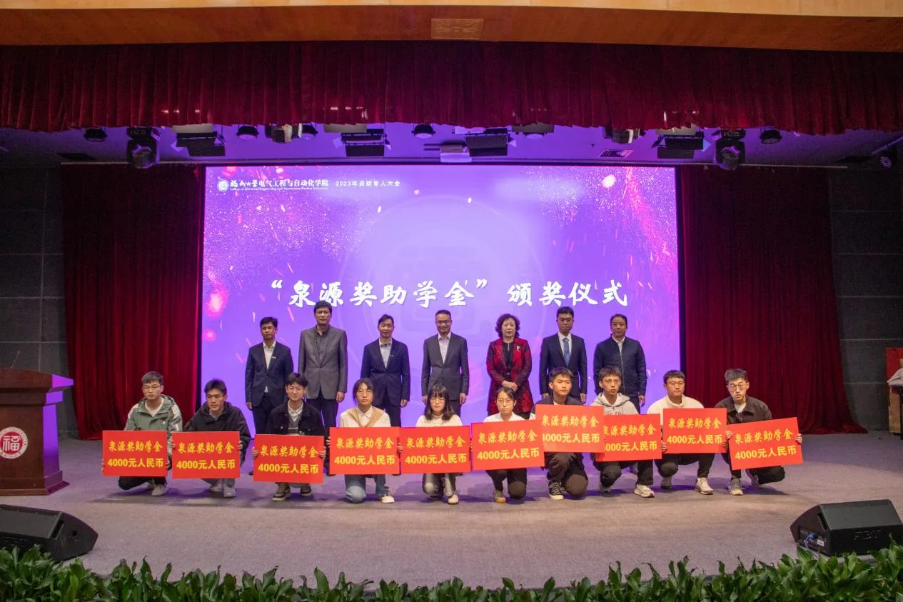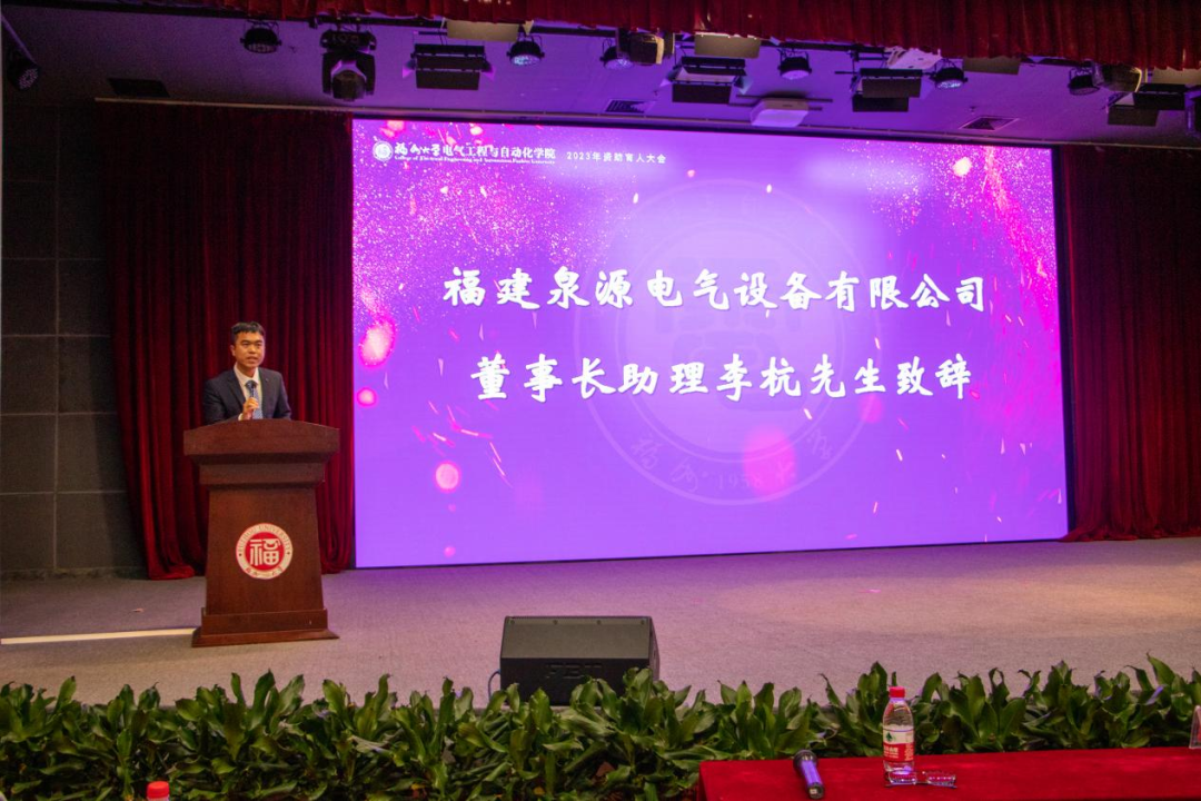 福建泉源电气设备有限公司董事长助理李杭先生首先对获奖学子表达了祝贺。他指出,泉源电气成立12年来,始终秉承着员工幸福、企业发展、回馈社会的核心文化理念,捐资设立泉源奖助学金,是泉源电气履行回馈社会责任的方式与心意。作为一家电力相关的高新技术企业,泉源电气深知人才对于企业发展的重要性,因此设立奖助学金以奖励成绩优异、学术成果丰富的励志学生。他希望电气学院的学生们可以不畏困难,学好专业知识,提升学术研究能力,做一名优秀的奠基人。