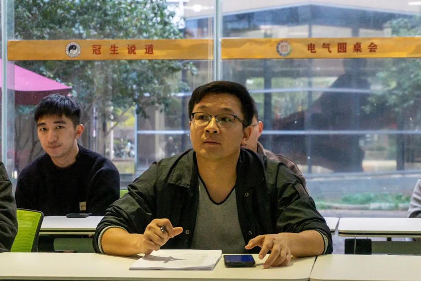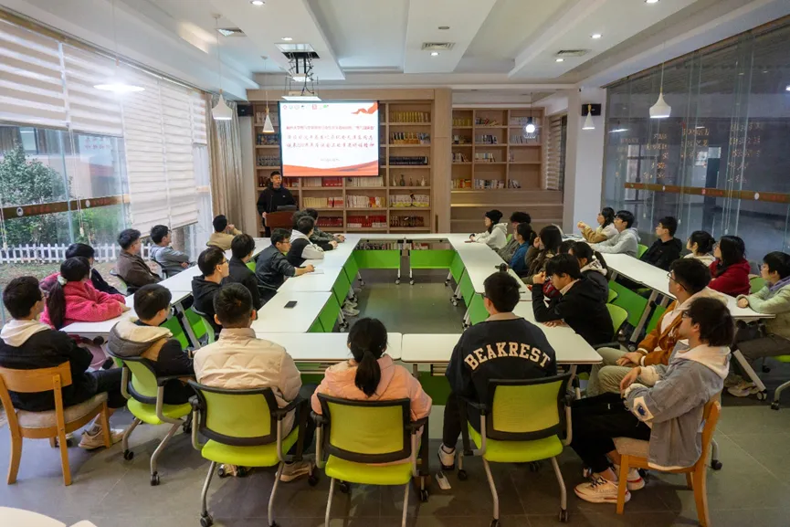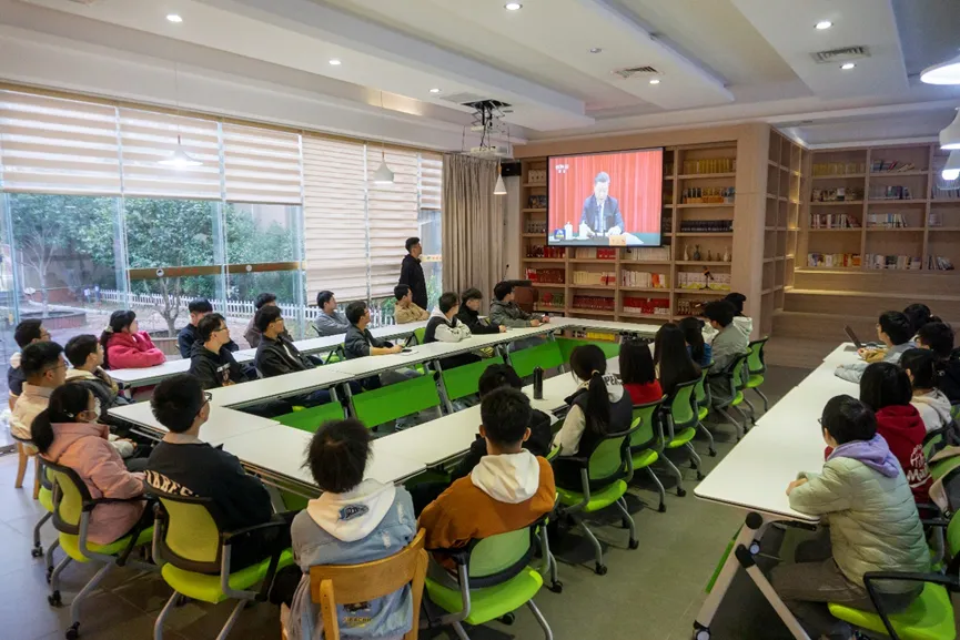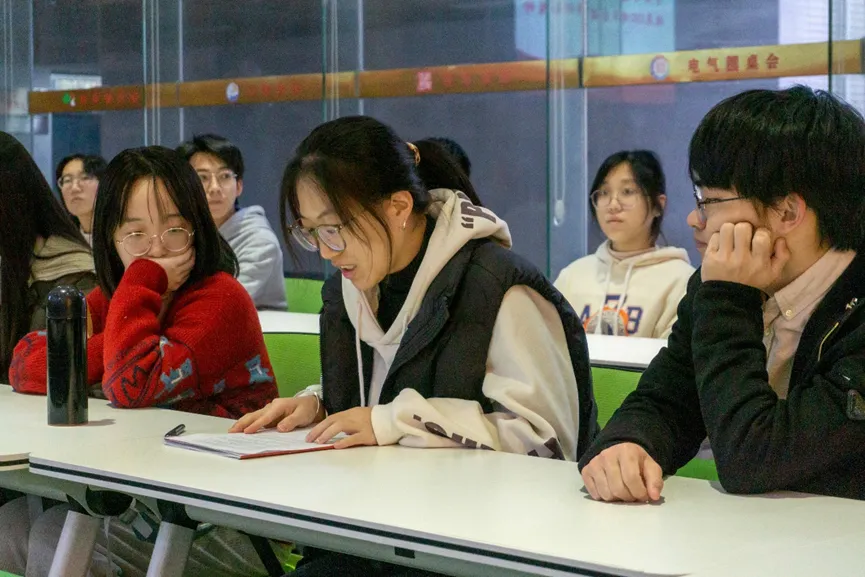 2023年12月29日下午,电气学院青年马克思主义者研读社成员、学生会和研究生会骨干于学院楼一楼青马研读社召开学习会,集中学习习近平总书记在纪念毛泽东同志诞辰130周年座谈会上的重要讲话精神。