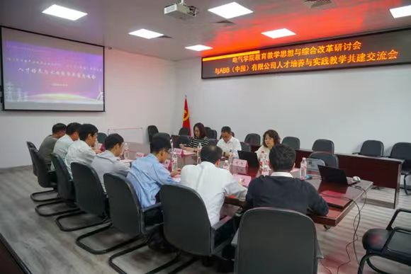 与ABB(中国)有限公司在学院楼南212会议室成功举办了人才培养及实践教学模式交流会。应邀参加此次会议的有厦门ABB低压电器设备有限公司总经理晋军、招聘专家黄旭、电气事业部智慧电力业务单元亚洲大区人力资源负责人曹俊鸿,院党委书记潘志辉、党委副书记钟钛申、副院长邵振国、副院长王武、院长助理鲍光海、团委书记李金土、电气工程系主任郑昕以及部分杜曼奖学金获奖学生出席了此次座谈会。