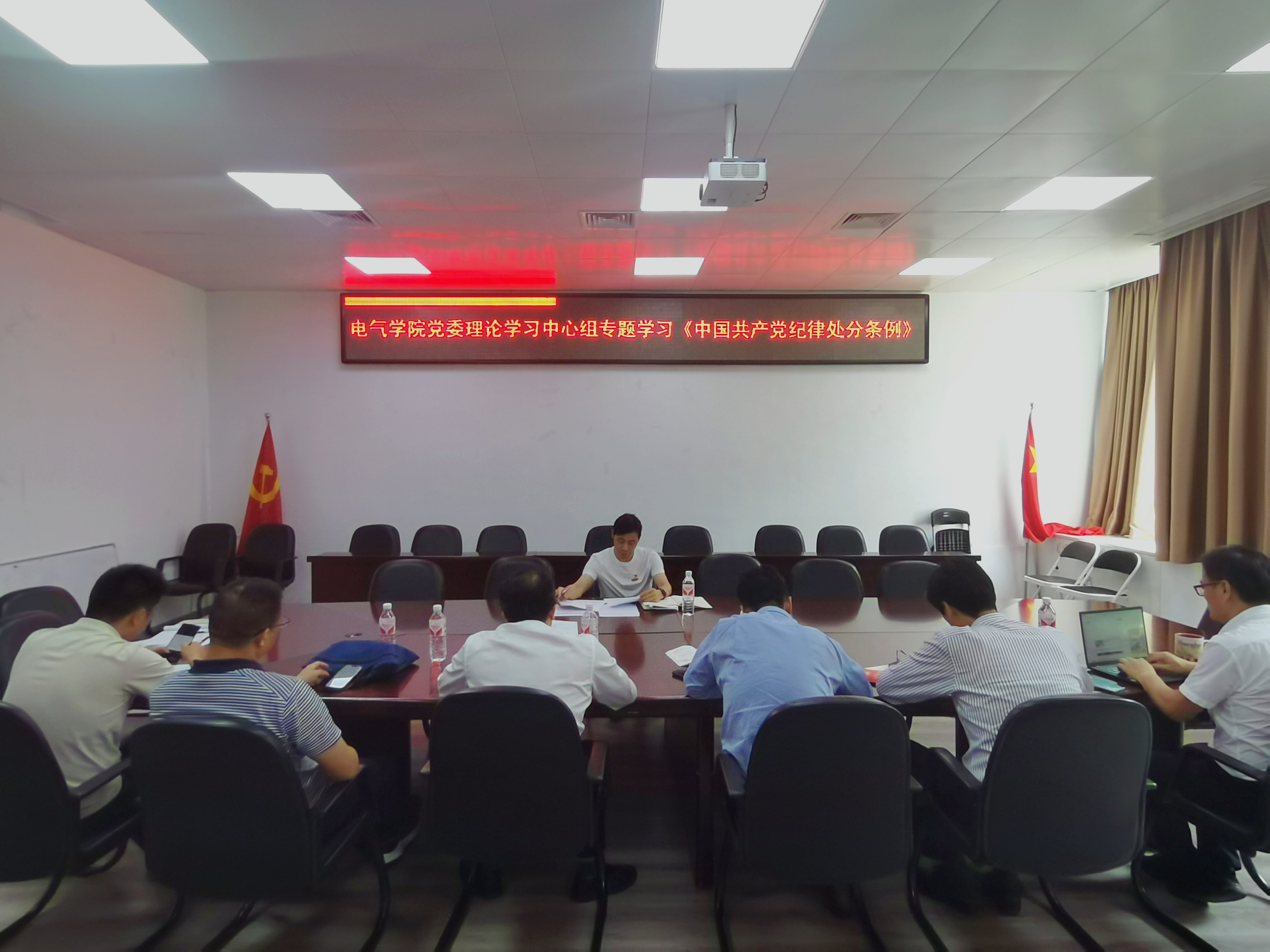 4月29日上午,电气学院党委举行党纪学习教育读书班暨党委中心组理论学习会,深入学习贯彻习近平总书记关于加强党的纪律教育的重要论述,学习贯彻《中国共产党纪律处分条例》(以下简称《条例》)。学院党委委员参加了会议,潘志辉书记主持会议。