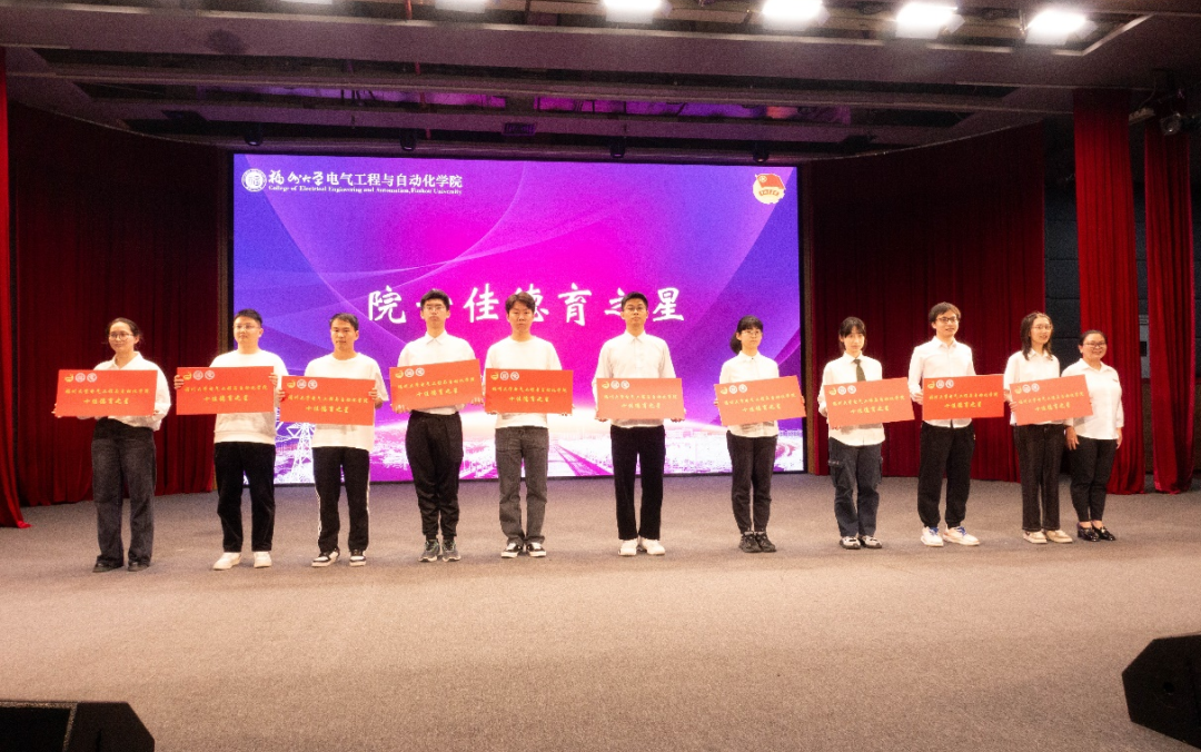 应用电子系主任周扬忠为获得“十佳劳育之星”表彰的学生颁奖。