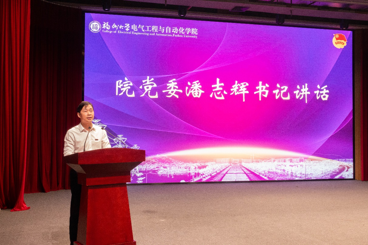 第八项议程 ,院党委潘志辉书记讲话。潘志辉书记在讲话中引用习近平总书记的重要论述,着重强调了青年一代在坚定理想信念、增强德行修养和强化使命担当方面的关键作用,他向青年学子提出三点希望:一是坚定理想信念,提高自身素质,争做新思想的践行者;二是增强德行修养,锐意开拓进取,争做新时代的奋斗者;三是强化使命担当,心系国家发展,争做新征程的奉献者。潘志辉书记发出号召,倡导青年学子秉持“有思想、有责任、有情怀”的品质,秉承“明德至诚,博学远志”的校训,弘扬“顶天立地”的电气精神,胸怀远志、手握蓝图,在以中国式现代化全面推进中华民族伟大复兴的历史进程中书写无愧于祖国、无愧于时代、无愧于青春的壮丽华章。