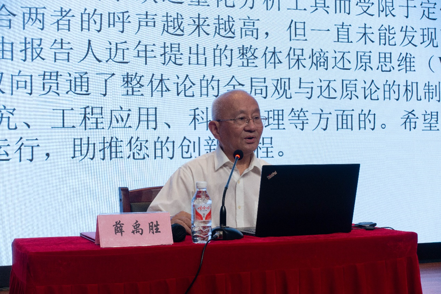 接着,薛院士向大家深入浅出地介绍了他提出的整体保熵还原思维(WRT),他以通俗易懂的语言解释了整体保熵还原思维的基本概念,详细阐述了WRT的核心思想。在介绍WRT的应用方面,薛院士提供了多个领域的实例,比如在基础研究、工程应用、科研管理等领域的应用。薛院士强调,整体保熵还原思维(WRT)并不是一种固定不变的模式,而是一种开放的、动态的思考框架。它鼓励科学家和研究者在面对复杂问题时,不断探索和创新,寻找更加有效的理解和解决问题的方法。通过WRT,我们期待在未来的科学研究和实践中,实现更加深入和全面的认识,为解决当今世界面临的各种复杂问题提供新的解决方案。