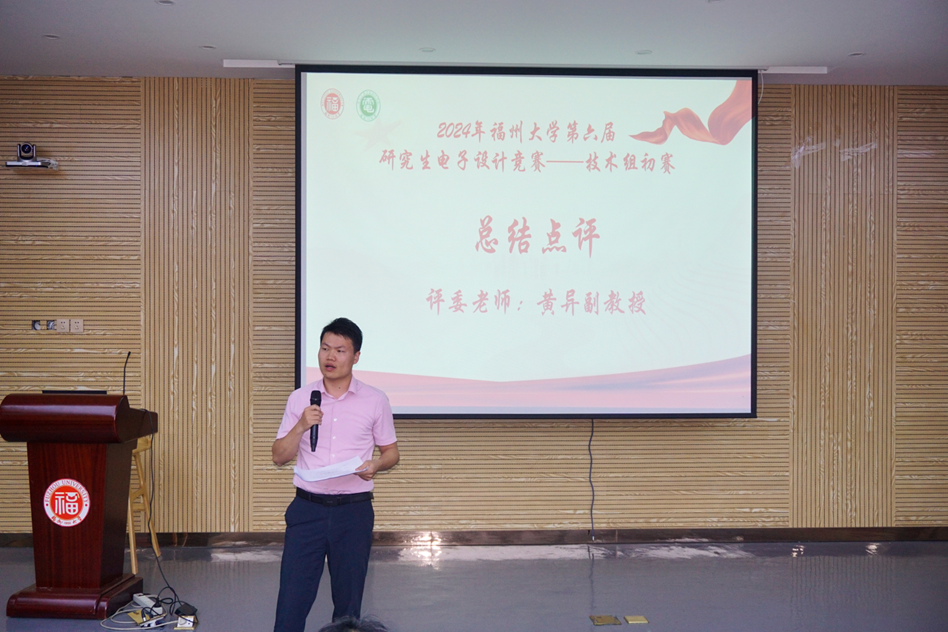 在所有参赛选手讲解结束后,黄异副教授为这次比赛进行了总结和点评。黄异副教授首先表示,今年参赛队伍数量相较之前明显增加,比赛的质量较去年也有了显著的提升。并对参赛队伍提出了三点宝贵建议:第一,目前阶段很多队伍的参赛项目还停留在实验室阶段,缺乏整体性。各个队伍应该把参赛项目朝着更整体化,更接近商品化的方向去改进;第二,许多队伍在介绍参赛项目时缺乏对比,缺乏实验数据的支撑和与其他技术的比较说明,这是评委评审时所关注的重点;第三,技术报告是评审打分的重要依据,此次比赛发现许多项目报告在格式上存在大量问题,包括参考文献、图片和文字说明等。一个出色的项目需要经过多次精心打磨和细节呈现,如果大家能够进入下一轮比赛,一定要继续认真打磨自己的参赛作品。