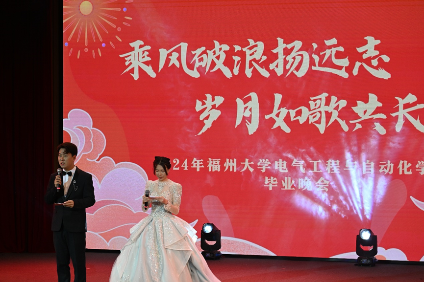 2024年毕业晚会在图书馆博学厅隆重举办。出席毕业晚会的领导、老师有负责学院行政工作副院长邵振国教授、电气学院党委副书记钟钛申老师、副院长王武教授、团委书记李金土老师、团委副书记梁艳华老师以及辅导员许海燕、尹万东、唐龙翰、何慧、陶可佳、黄莹莹、卢煜、赖先民。