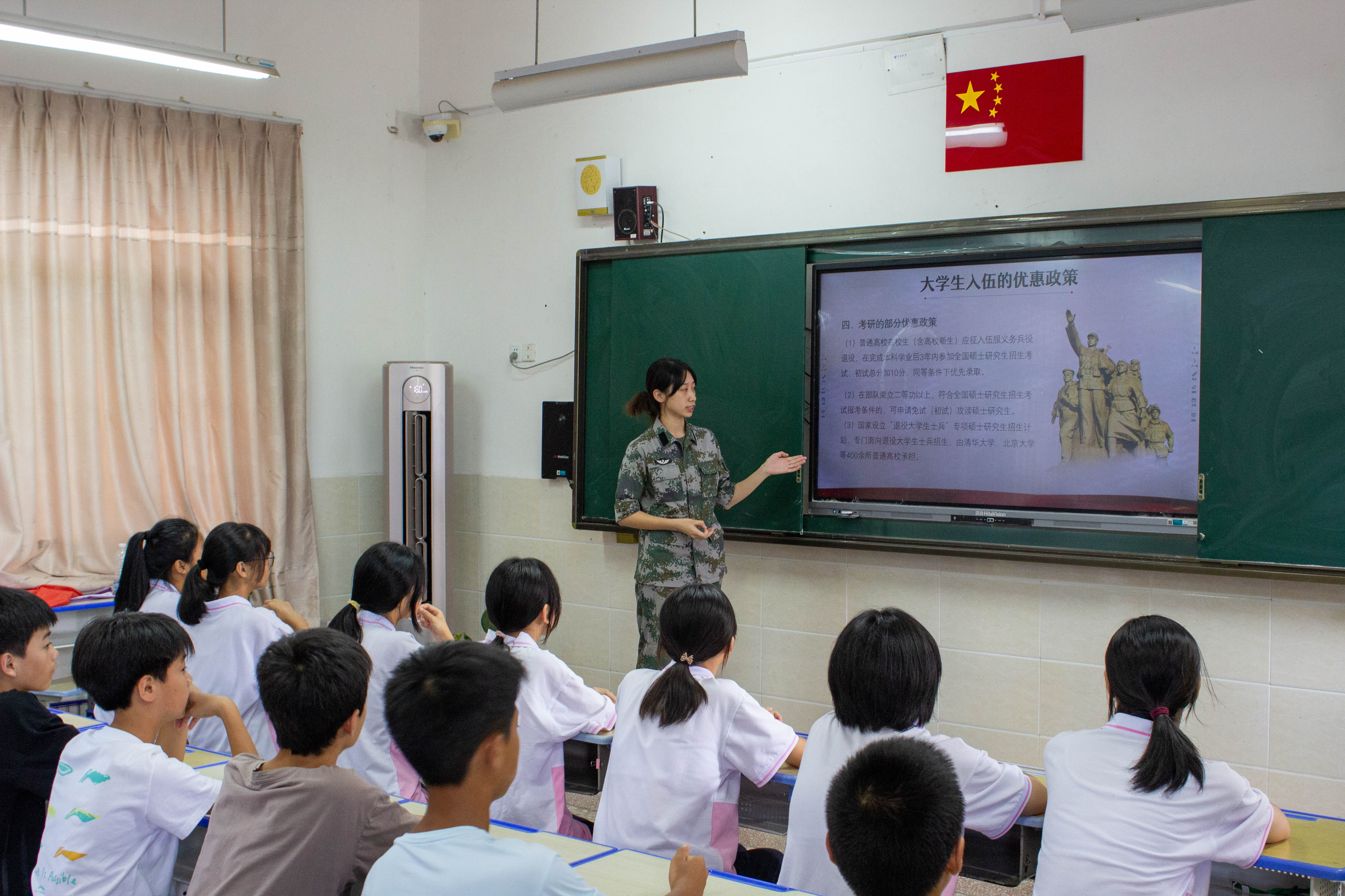 实践队在上杭县官庄民族中学开展主题为“胸怀爱国情,笃行报国志”的国防教育主题活动,为当地少数民族学生们带来一堂别开生面的爱国主义教育课。
