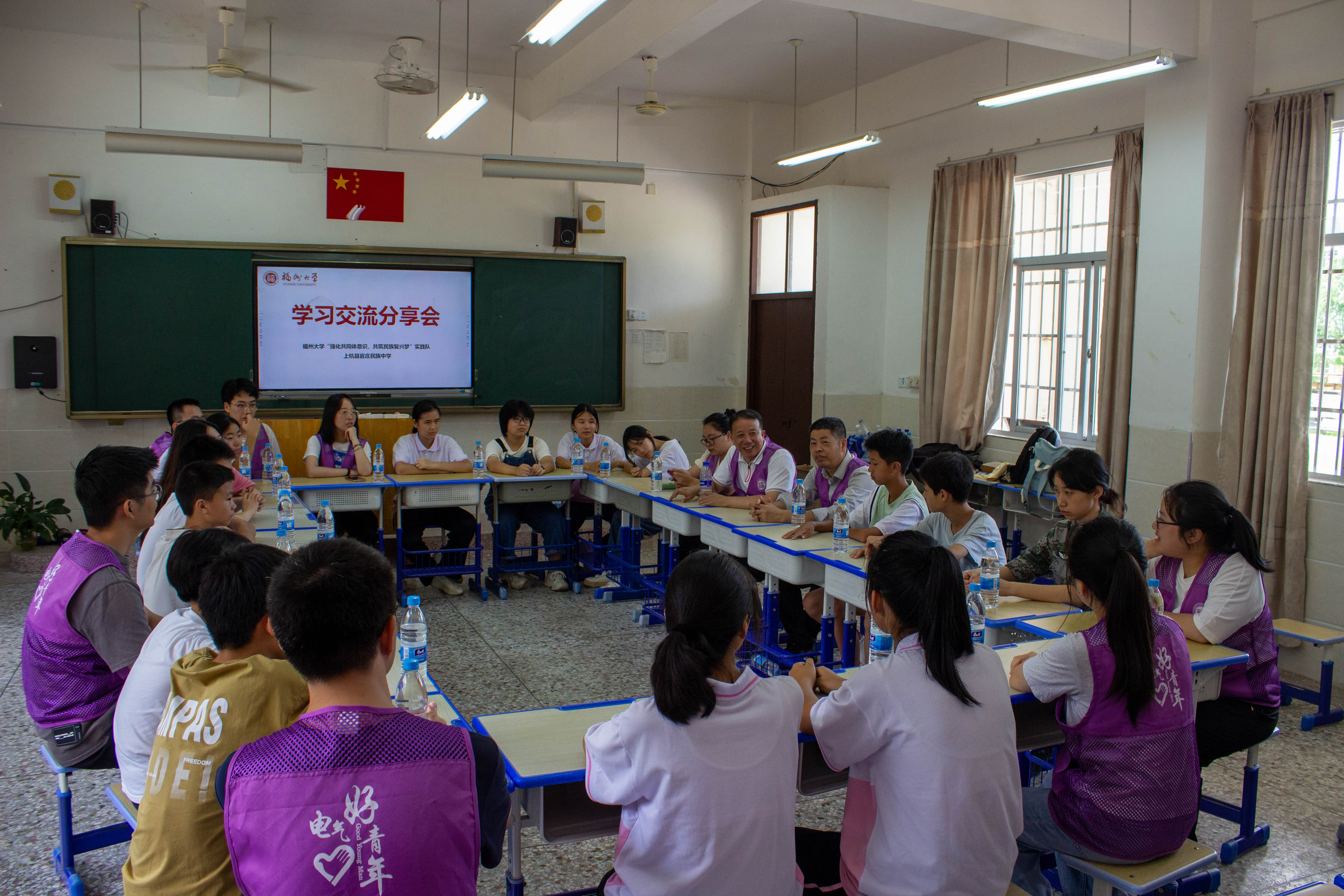 面对面。实践队与上杭县官庄民族中学的少数民族学生以圆桌分享会的形式深入交流。偷拍视频