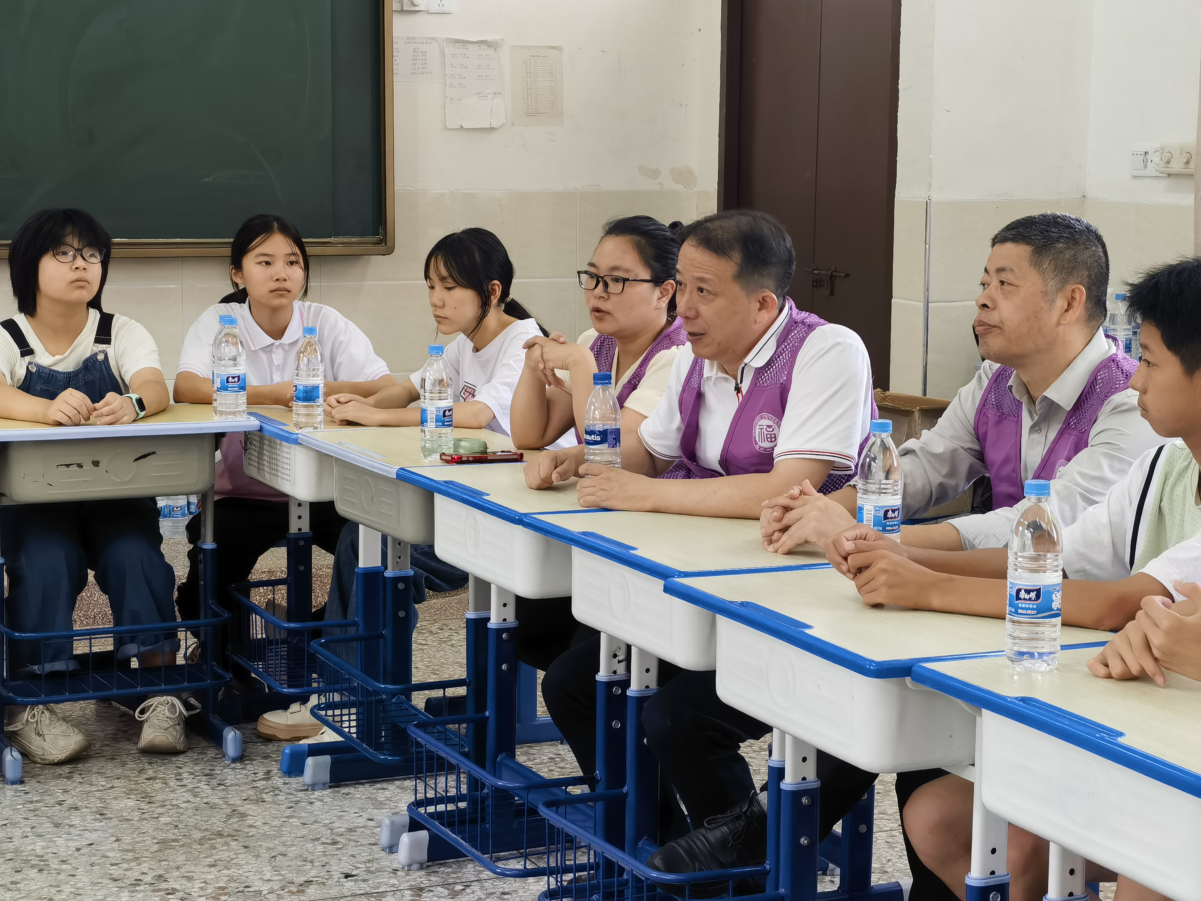 副院长王武教授、学院团委副书记梁艳华老师、教授级高级实验师陈建国老师参与圆桌交流,就理想信念、生活习惯、学习方法等方面,与民族中学的同学们亲切交谈,鼓励同学们要树立远大理想,养成良好的生活和学习习惯,通过努力创造自己的美好未来,从祖国的花朵成长为国家栋梁。同学们畅所欲言,提出各种学习问题、抒发自己的对大学生活的憧憬,与实践队队员们充分探讨。