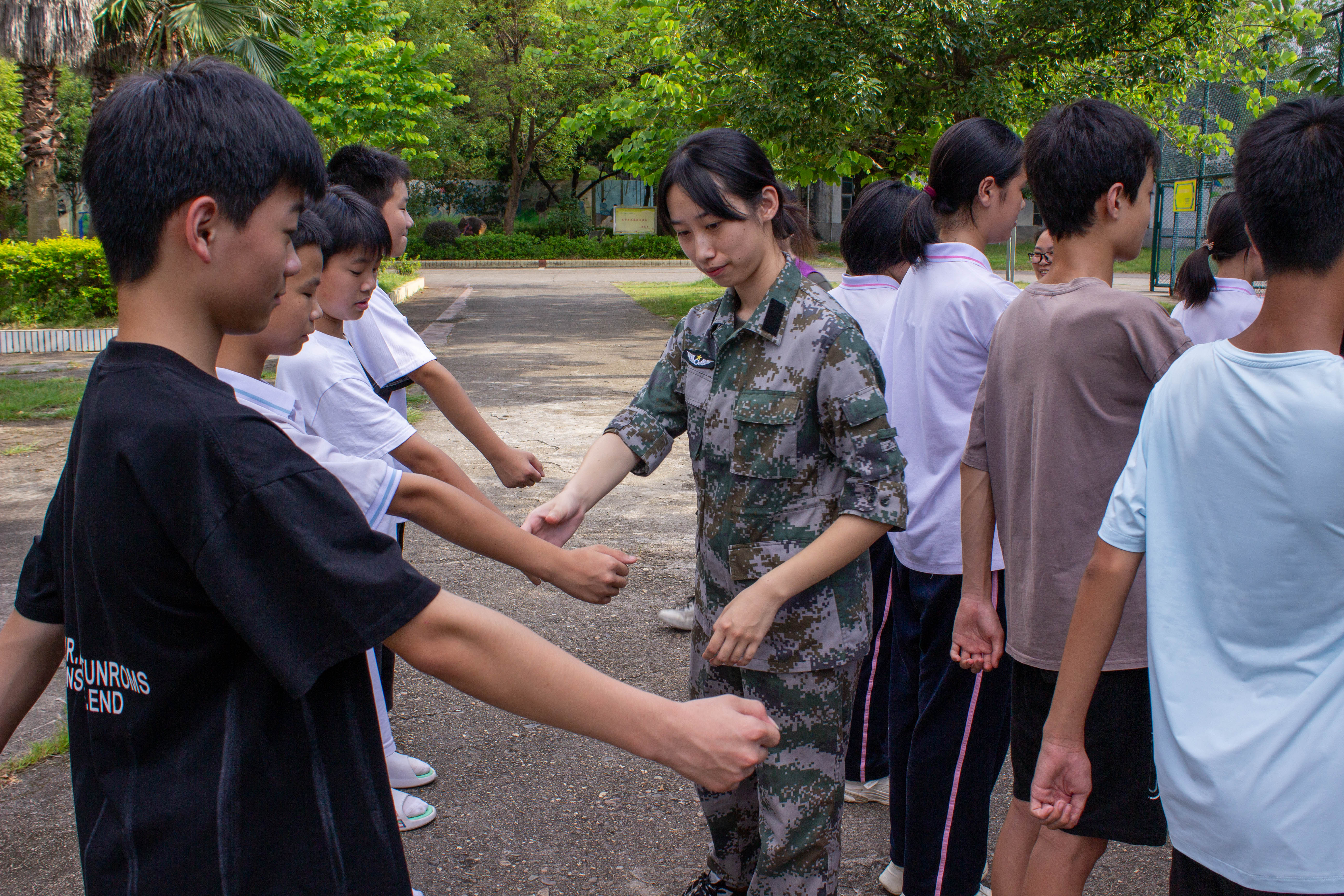 童淅瑶同学带领孩子们进行军事训练