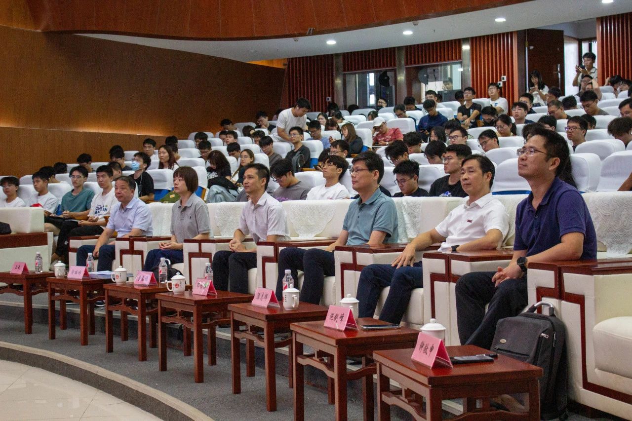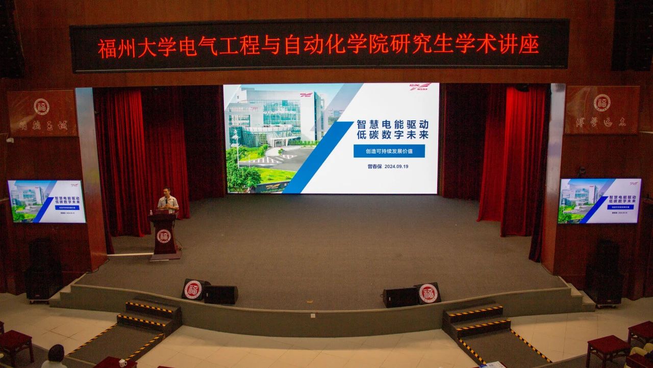 捐赠签约仪式暨专家学术报告在图书馆博学厅举行。出席本次活动的领导和嘉宾有科华数能副总裁兼数能技术中心总经理曾春保、科华技术中心人力总监施剑峰、集团招聘经理谢丽冰、技术中心招聘经理丁红,电气学院党委书记潘志辉老师、全面负责学院行政工作的副院长邵振国教授、党委副书记钟钛申老师、副院长王武教授等。