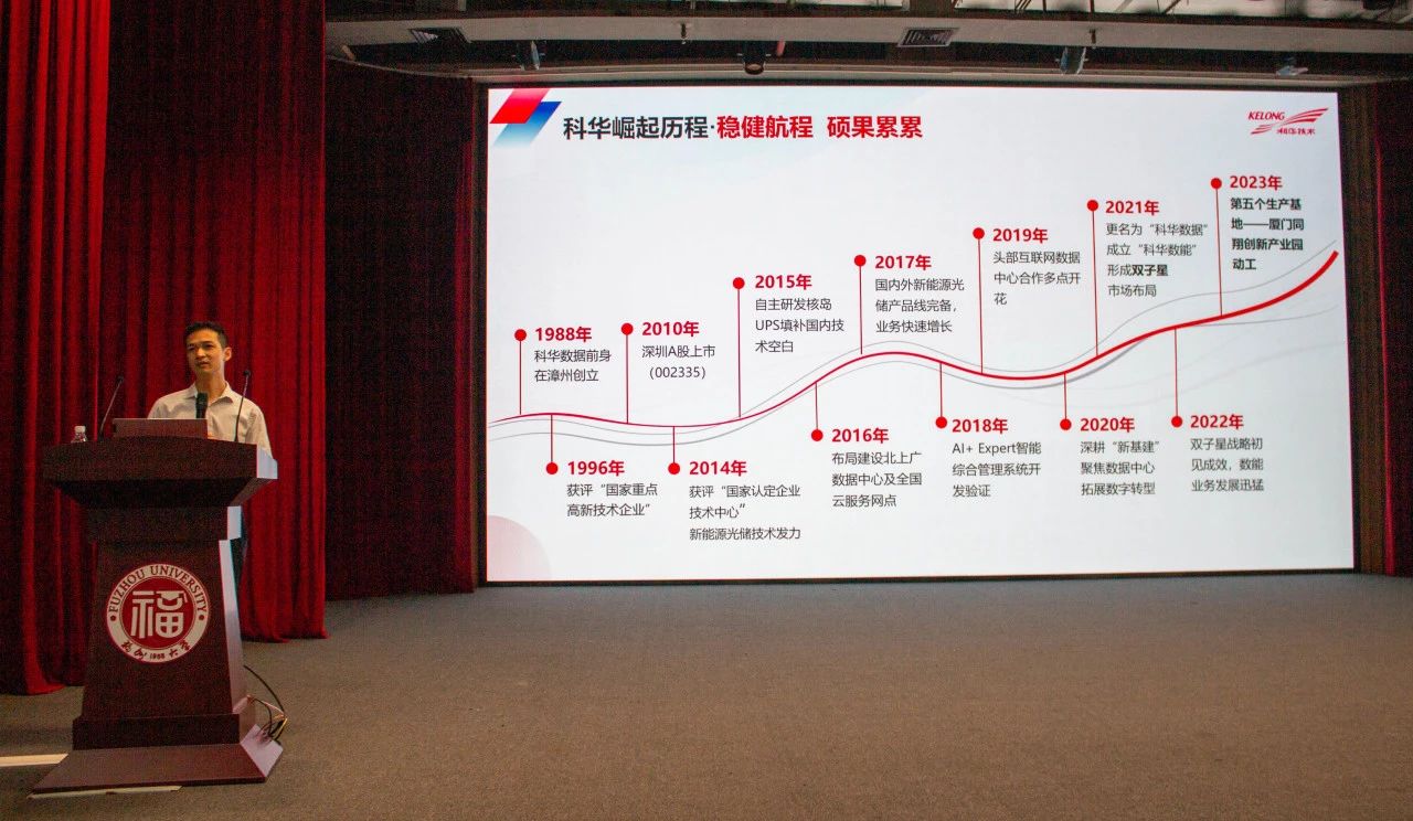 曾春保副总裁讲座题目是《智慧电能驱动低碳数字未来》。他首先介绍了一下电力电子行业的前景,随着全球能源结构的变革,电气驱动、信息系统、工业自动化的高速发展,“再电气化”正在成为不可逆转的趋势,构建以新能源为主题的新型电力系统是实现双碳目标的基础,而数字化又是加快绿色低碳转型的关键,电力电子技术作为能源变换和信息控制的结合,融入电能变换的各个环节,成为现代能源变换的核心。随后,曾春保副总裁还介绍了科华集团的行业地位与研发实力,科华数据注重研发,研发投入经费充足,从1988成立到现在,一路稳健前行硕果累累。自迈入新能源领域以来,科华始终以研发创新为驱动,攻克多项储能关键技术,推动行业取得重大进步。