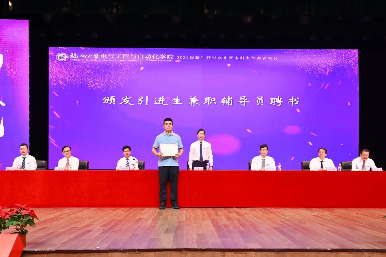 副院长王武教授宣读新生班主任、引进生兼职辅导员聘任名单,并举行聘书授予仪式。班主任和辅导员是大学生迎接新生活的引路人,其对新生具有非常重要的引领作用,为新生快速融入电气学院大家庭,在新天地中开拓自我提供了有力支持。