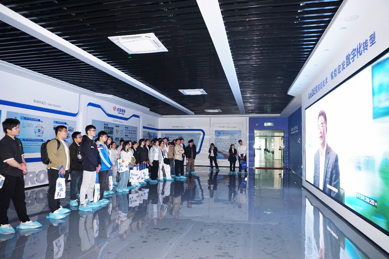 同学们被分为三个小队,有序进入宏发模具中心进行参观。恒温恒湿管控系统、各类实训平台、技能大师工作室、高精度检测室以及陈列柜中的精密模具组件等都让同学们连连惊叹。在参观过程中,同学们感受到了模具制造行业的专业性和严谨性,方寸模具间,凝聚着劳动者对极致的执着追求,闪耀着产业报国的赤子匠心。