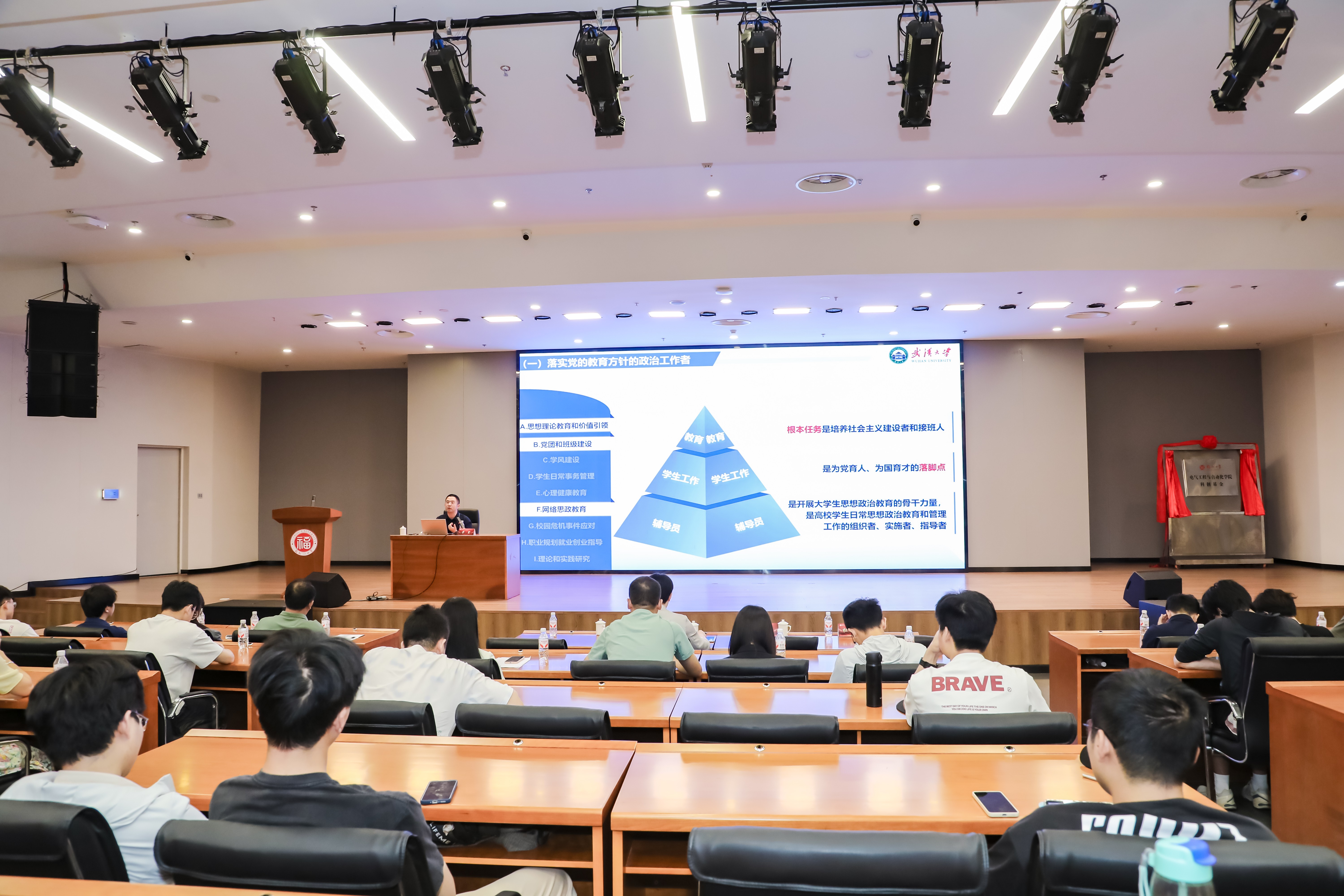 “思政大讲坛”(第六期)专题讲座于在晋江楼一楼报告厅顺利举行。本次专题讲座特别邀请武汉大学党委学生工作部部长兼人民武装部部长,本科生院副院长兼学生工作处处长,武汉大学大学生发展研究中心主任黄鑫作为主讲嘉宾。本次讲座由学生工作部(处)张红部(处)长主持,电气学院全体辅导员、教师代表、企业代表、以及部分学院副书记、政工干部参加。