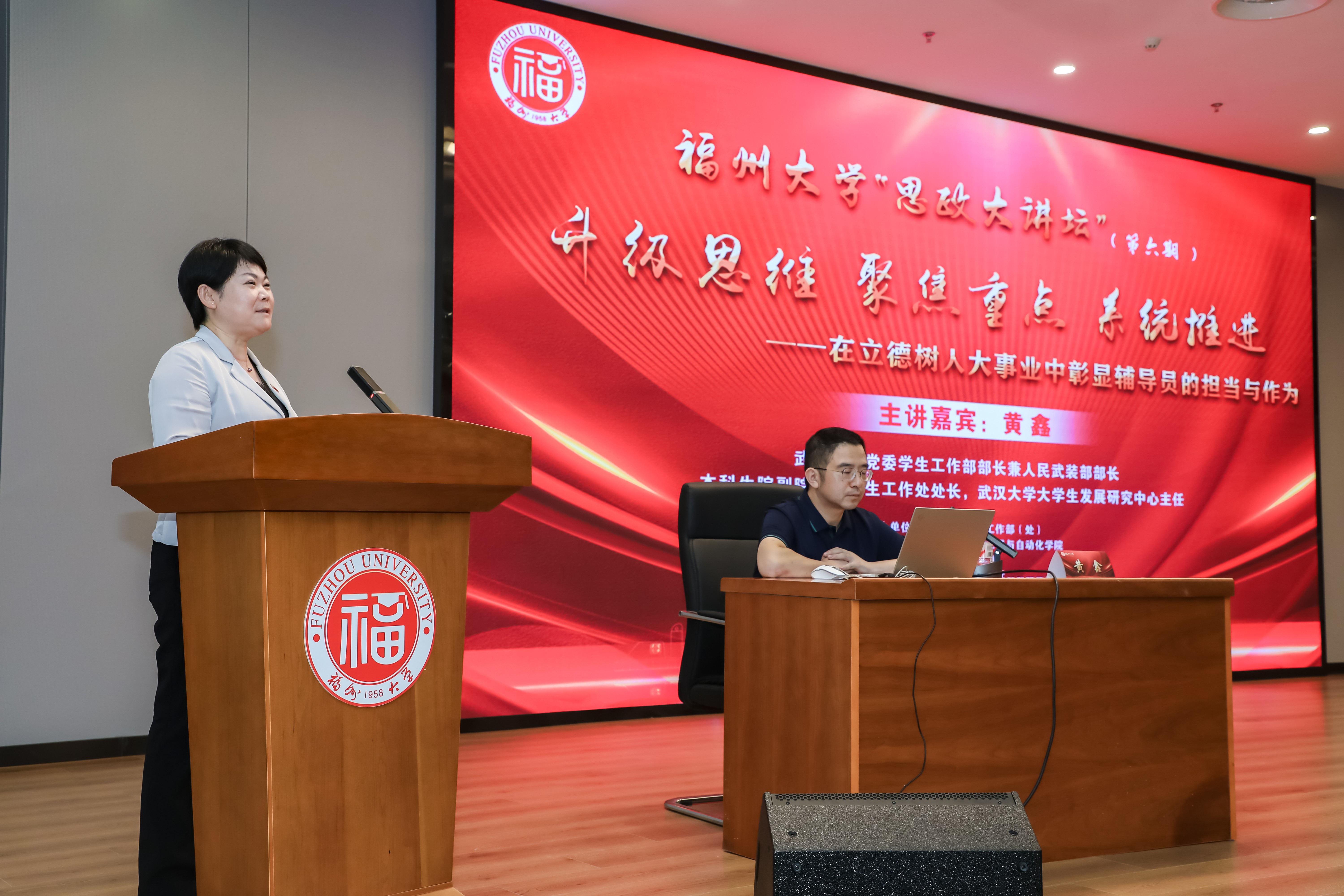 黄鑫部长的精彩分享,既有高瞻远瞩的理论指引,又有切实可行的实践经验,为新时代的辅导员们明晰了工作方向,也为学校的思政工作提供了宝贵借鉴,激励着每一位教育工作者在立德树人的伟大事业中踔厉奋发、勇担使命,为培养德智体美劳全面发展的社会主义建设者和接班人不懈奋斗。