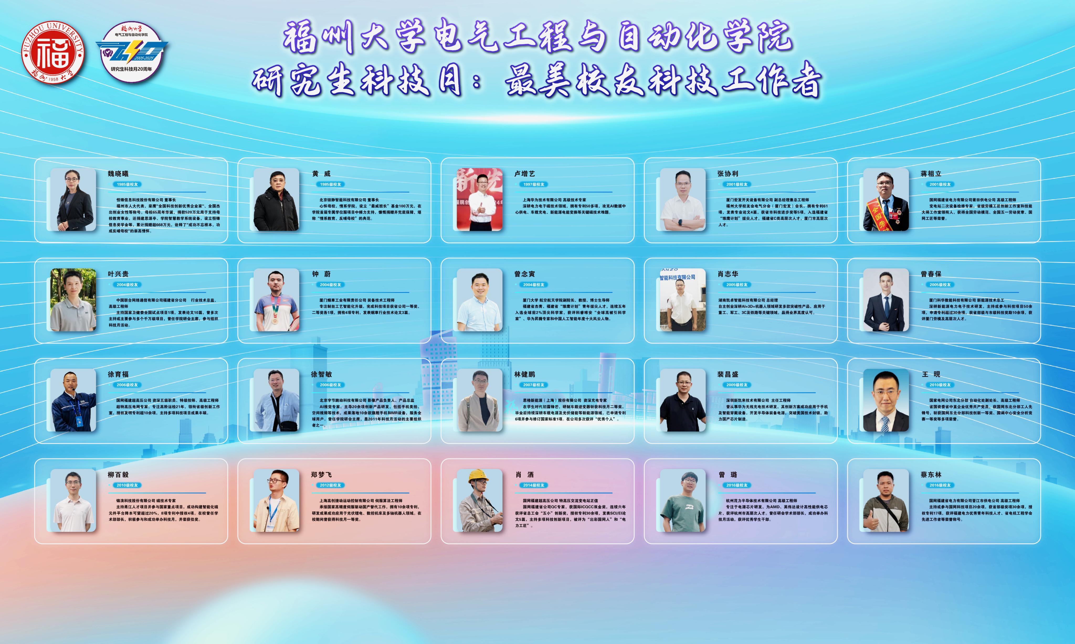 学生工作高质量发展论坛暨研究生科技月20周年庆典顺利召开,本次活动以“智汇二十,创见未来”为主题,聚焦时代命题与学生成长,汇聚校企精英、杰出校友与思政专家,共同探索新工科背景下学生工作与人才培养的创新路径,为科技月二十载积淀注入新动能,擘画育人新范式与未来发展新蓝图。衷心感谢福州福大自动化科技有限公司对本次活动的大力支持与赞助!