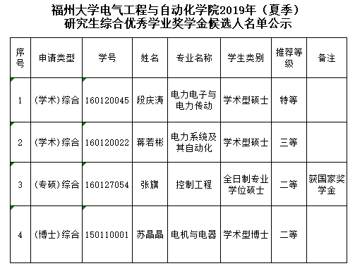 根据《关于做好2019年(夏季)研究生综合优秀学业奖学金评选工作的通知》(校研〔2019〕35号)、《偷拍视频 博士研究生优秀学业奖学金评定办法(试行)》和《偷拍视频 硕士研究生优秀学业奖学金评定细则》的有关规定,经个人申请,院研究生优秀学业奖学金评审工作小组评审,产生偷拍视频 2019年(夏季)研究生综合优秀学业奖学金候选人上报名单。现公示如下,公示期为2019年9月12日至9月19日。